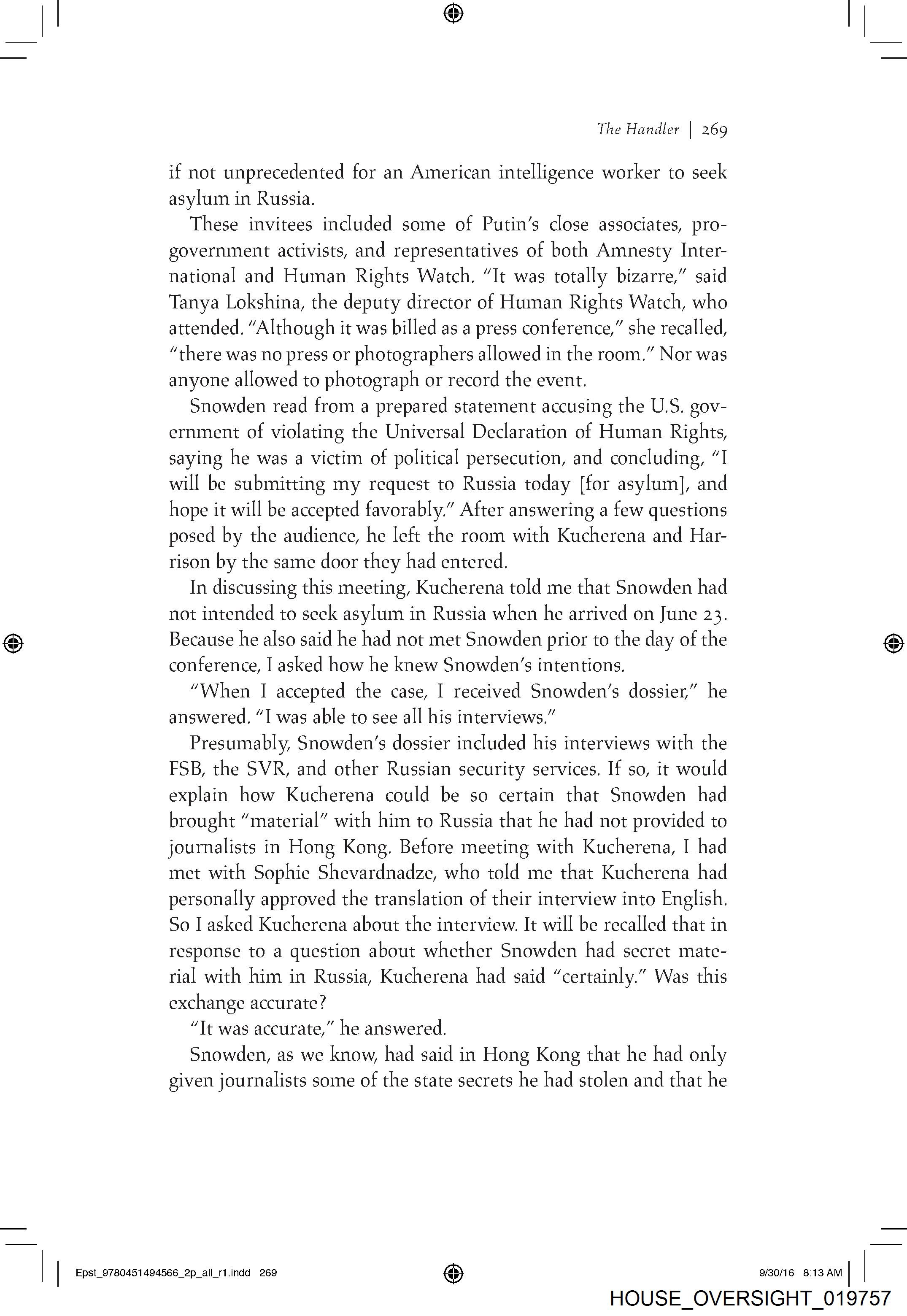 In discussing this meeting, Kucherena told me that Snowden had