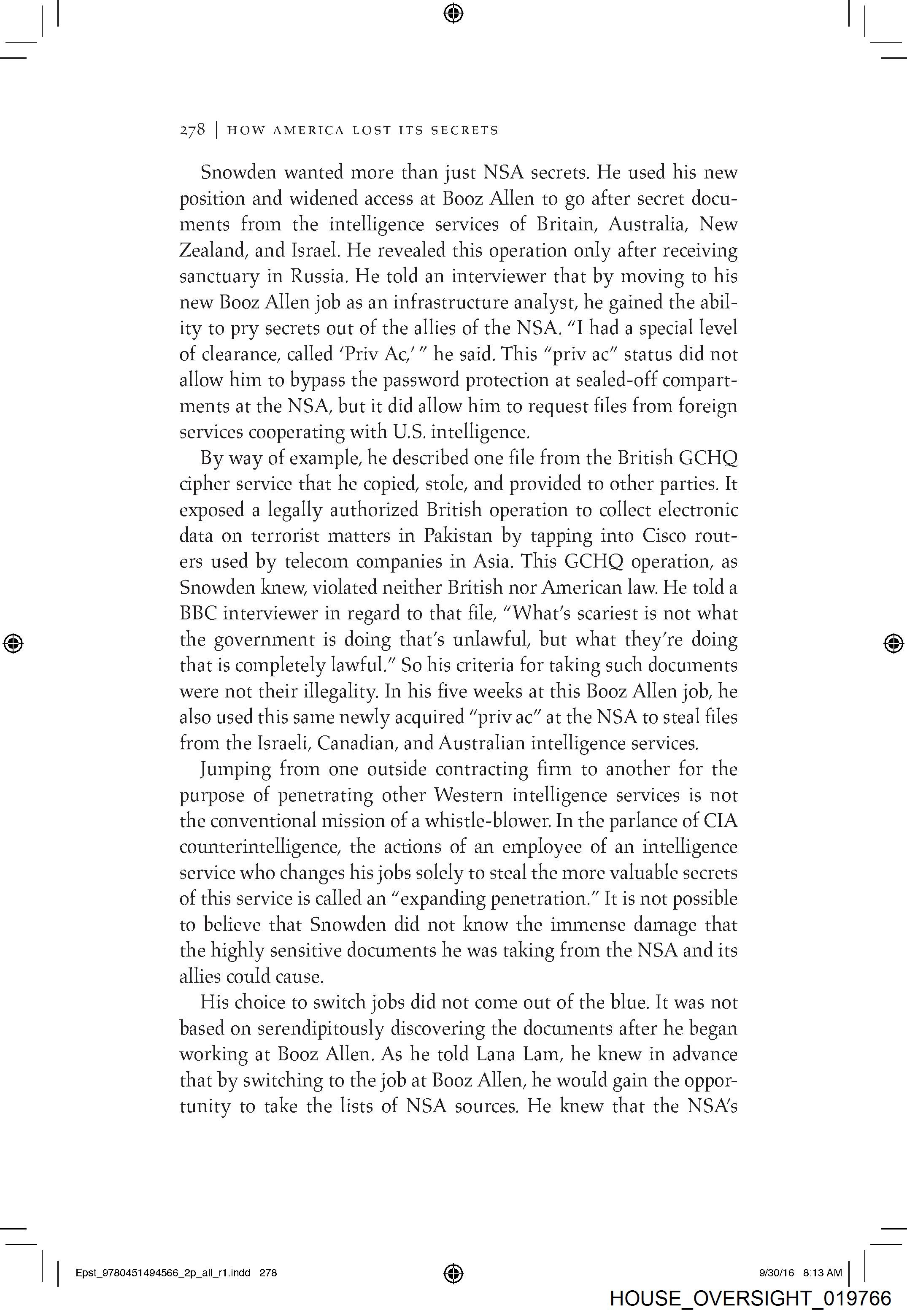 working at Booz Allen. As he told Lana Lam, he knew in advance