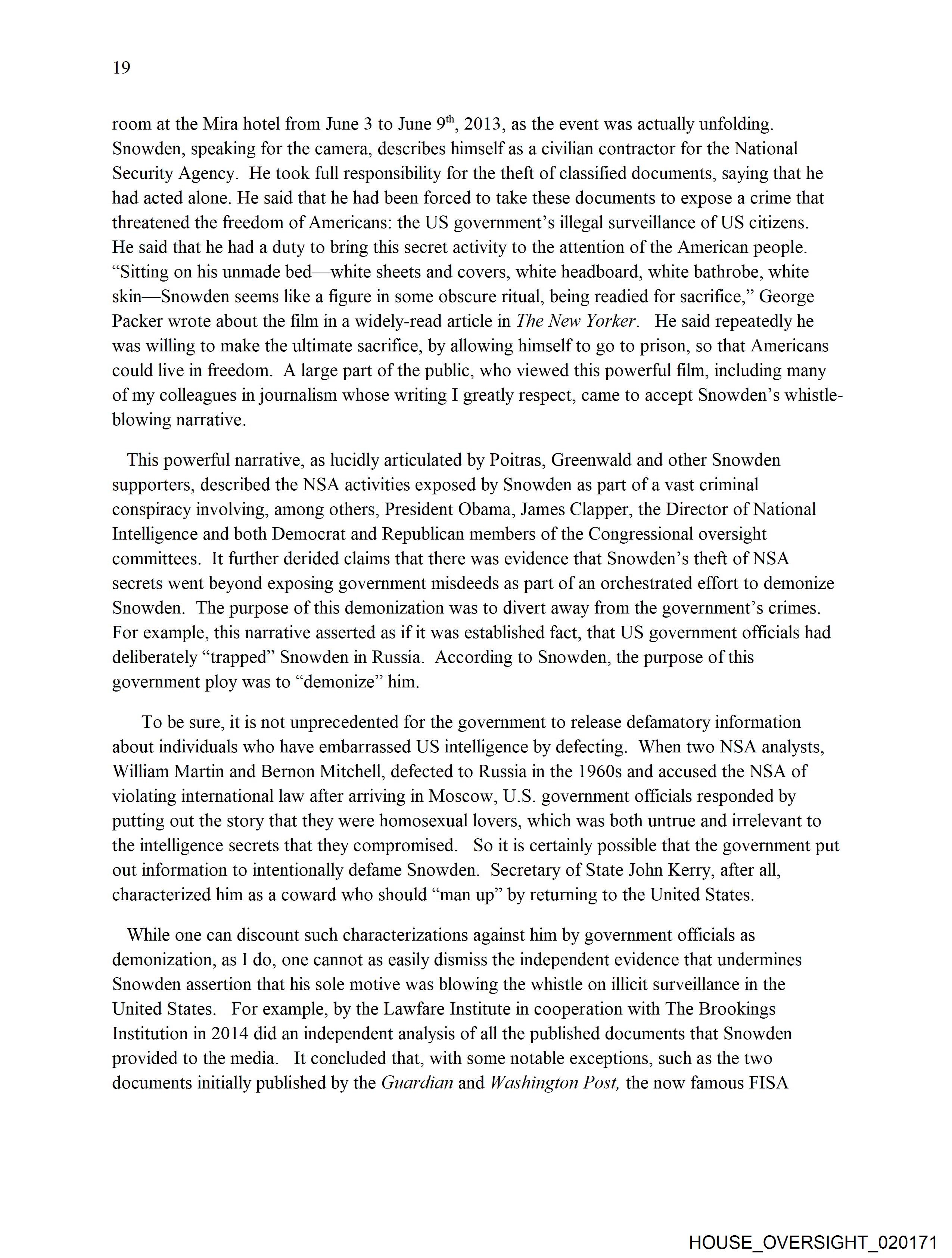 committees. It further derided claims that there was evidence that Snowden’s theft of NSA