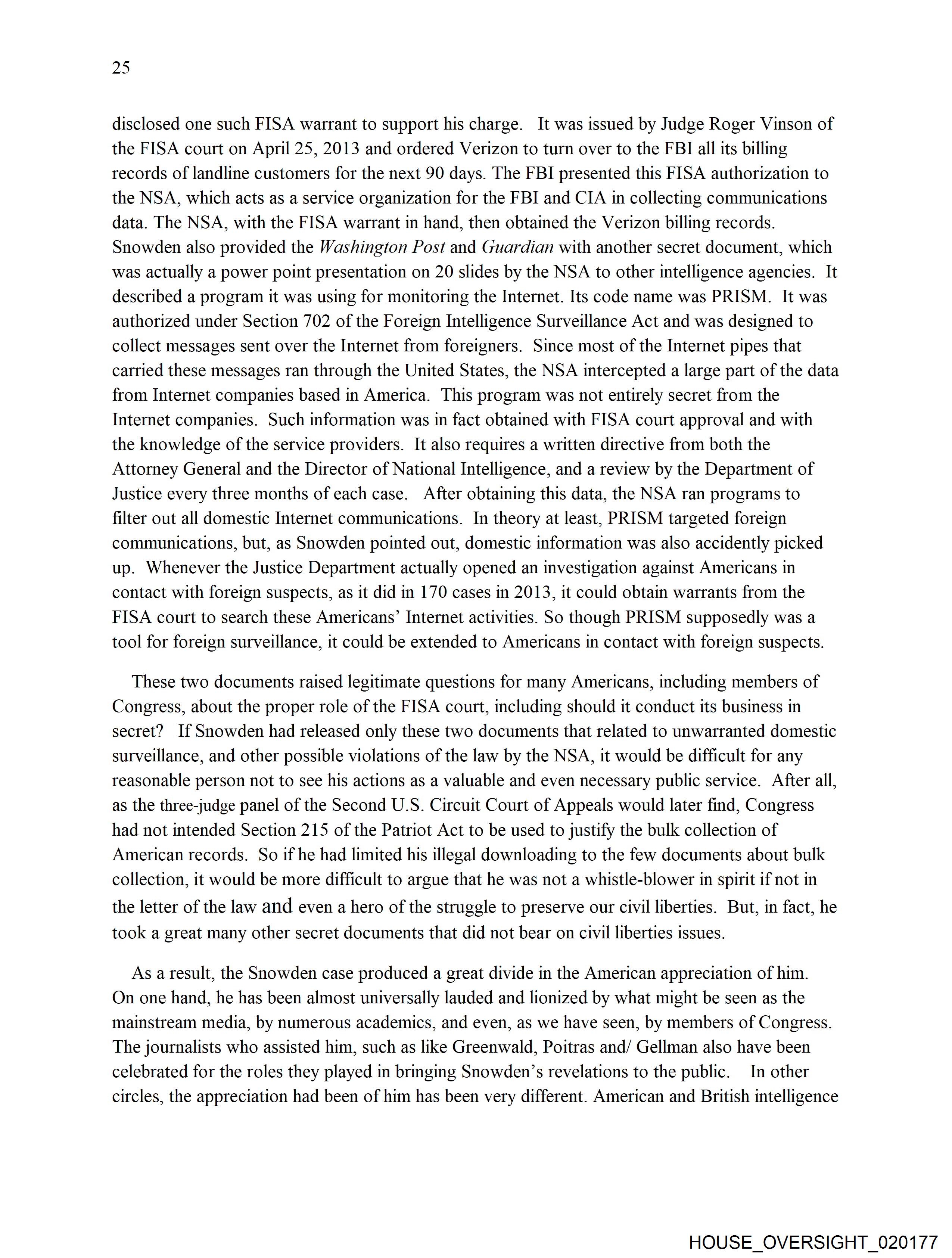 secret? If Snowden had released only these two documents that related to unwarranted domestic
