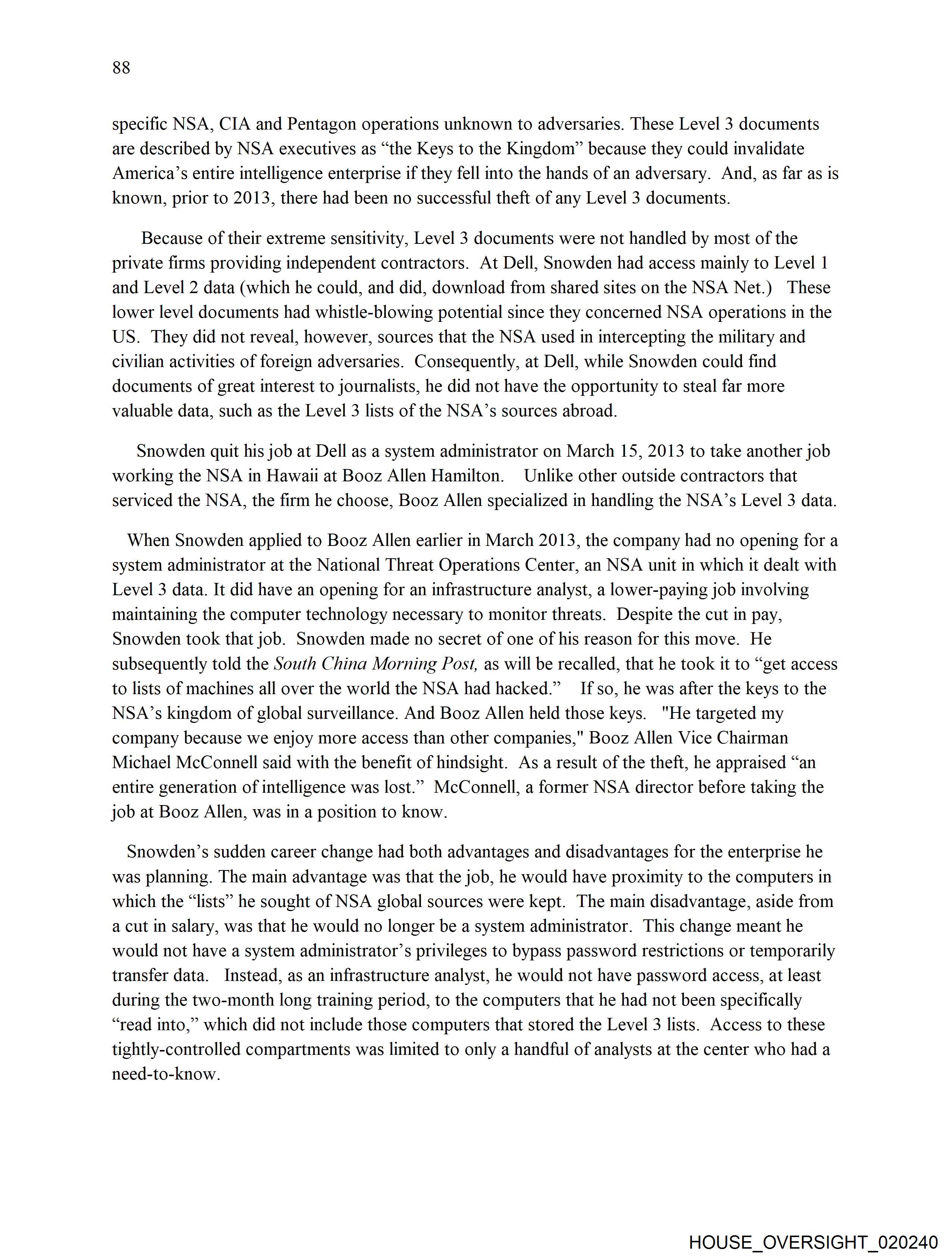 and Level 2 data (which he could, and did, download from shared sites on the NSA Net.) These