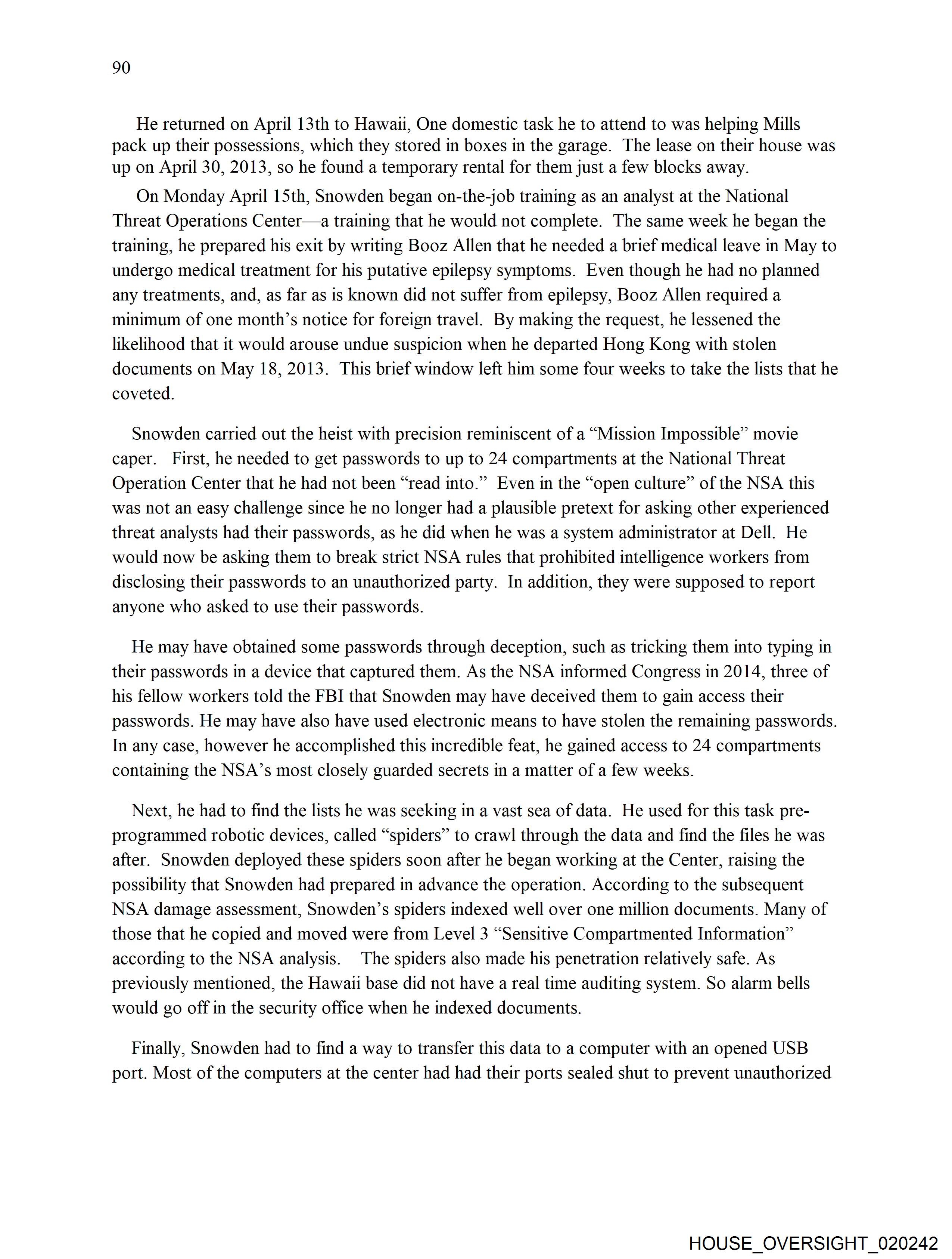 training, he prepared his exit by writing Booz Allen that he needed a brief medical leave in May to