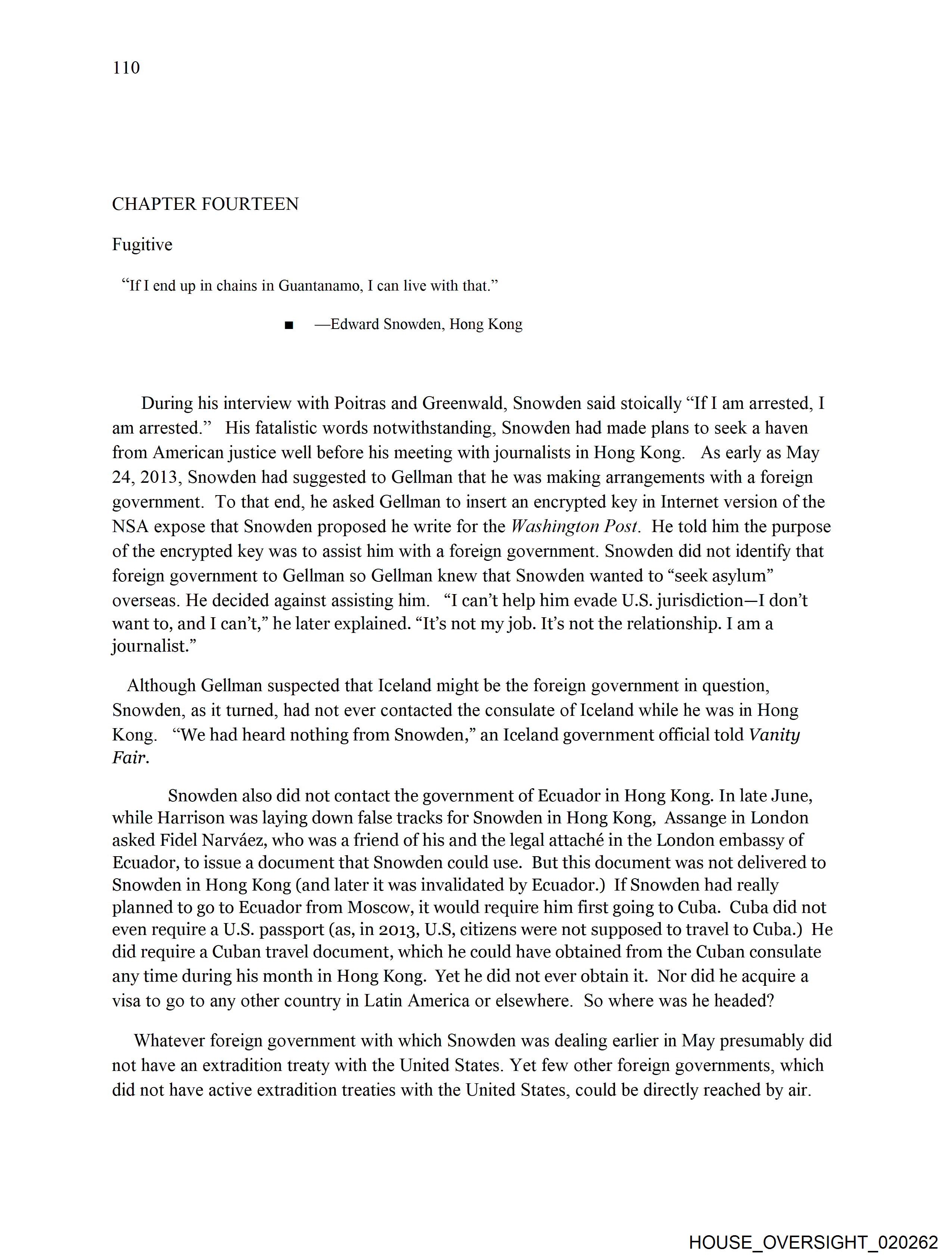 am arrested.” His fatalistic words notwithstanding, Snowden had made plans to seek a haven