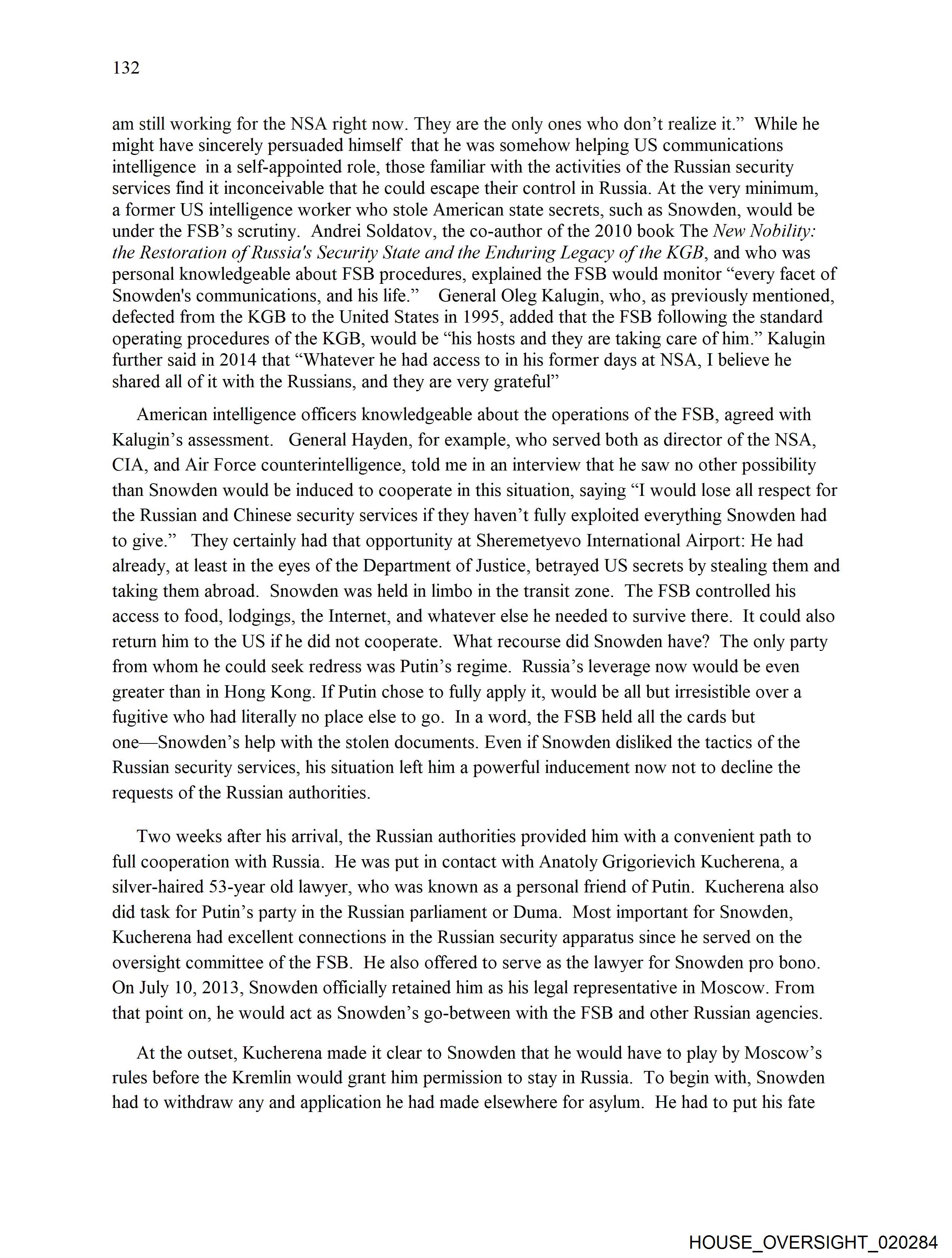 Snowden's communications, and his life.” General Oleg Kalugin, who, as previously mentioned,