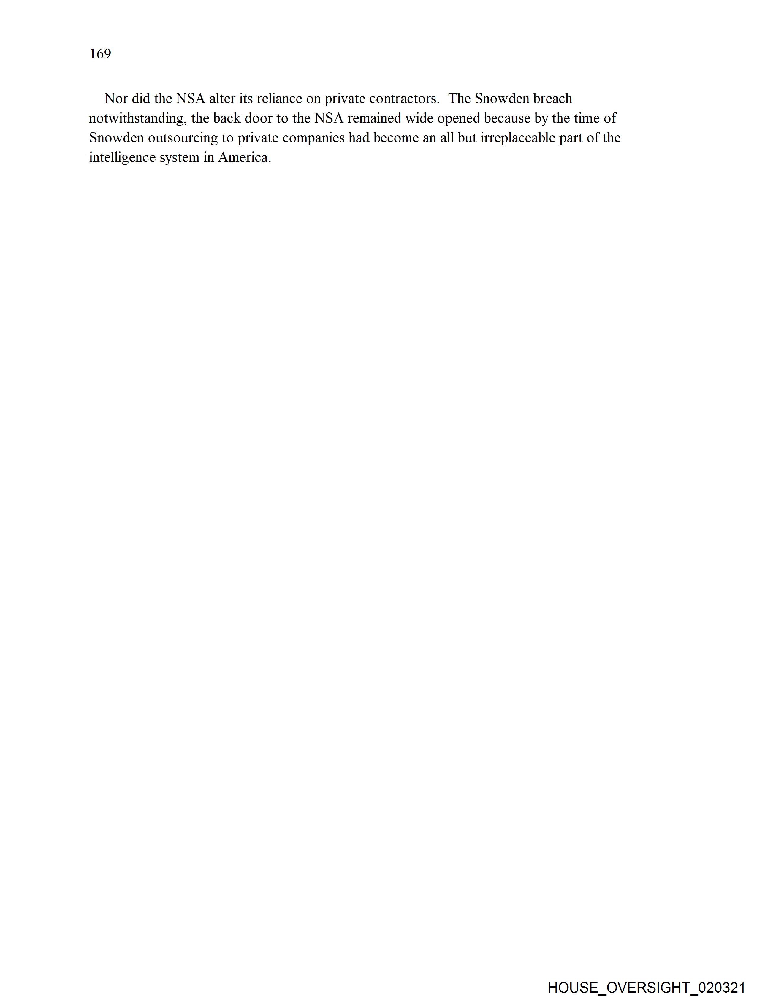 Nor did the NSA alter its reliance on private contractors. The Snowden breach