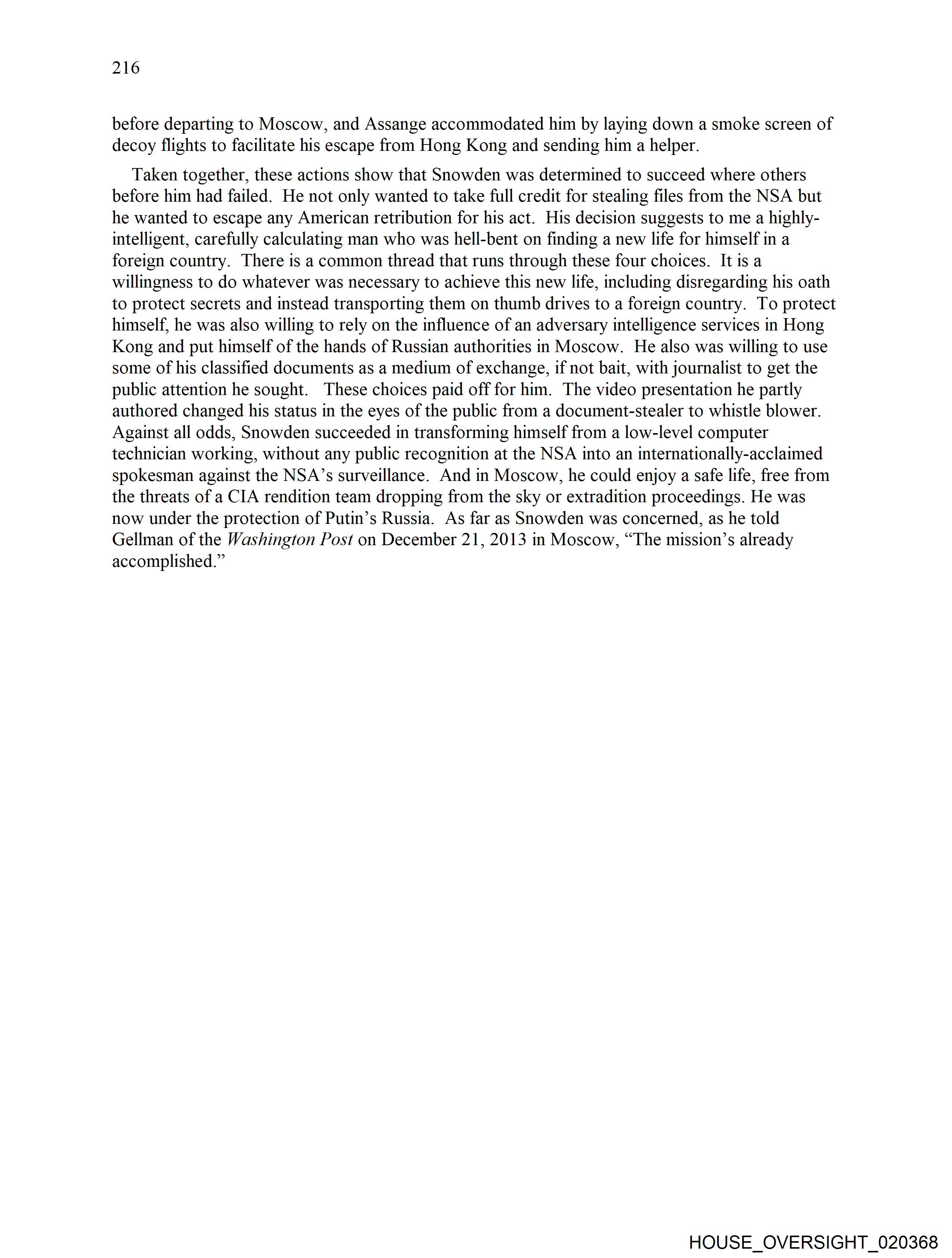Gellman of the Washington Post on December 21, 2013 in Moscow, “The mission’s already
