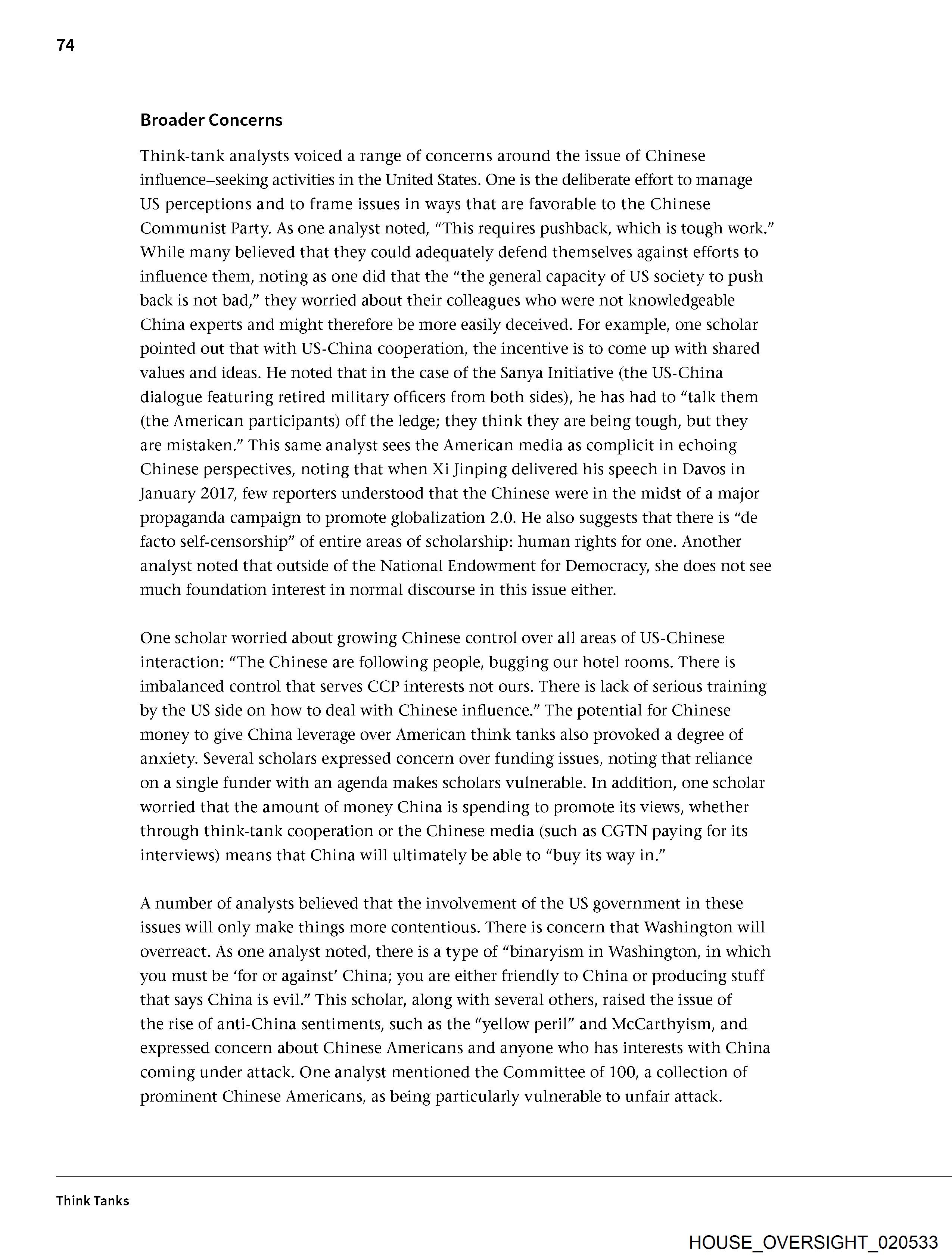 money to give China leverage over American think tanks also provoked a degree of