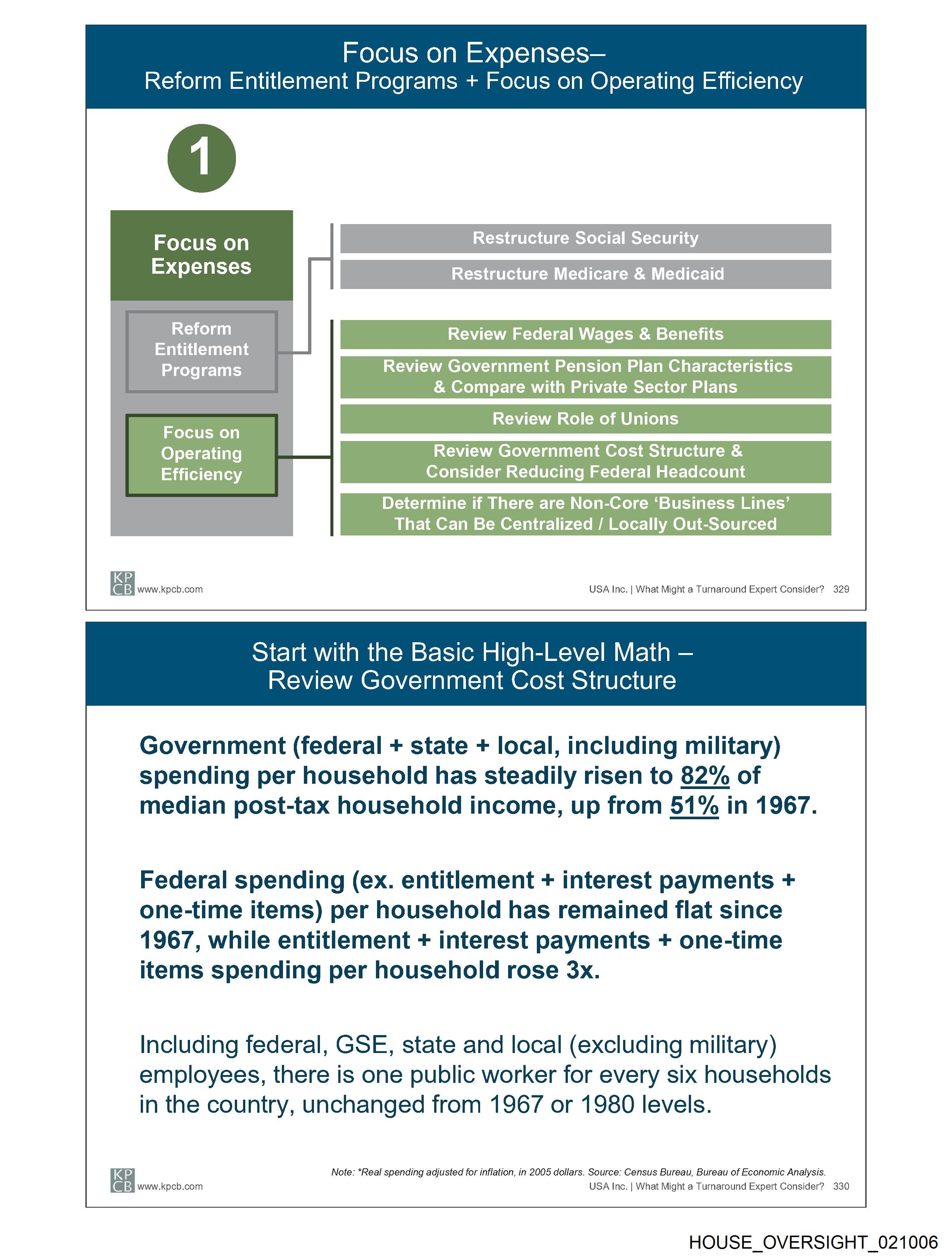 Reform Entitlement Programs + Focus on Operating Efficiency