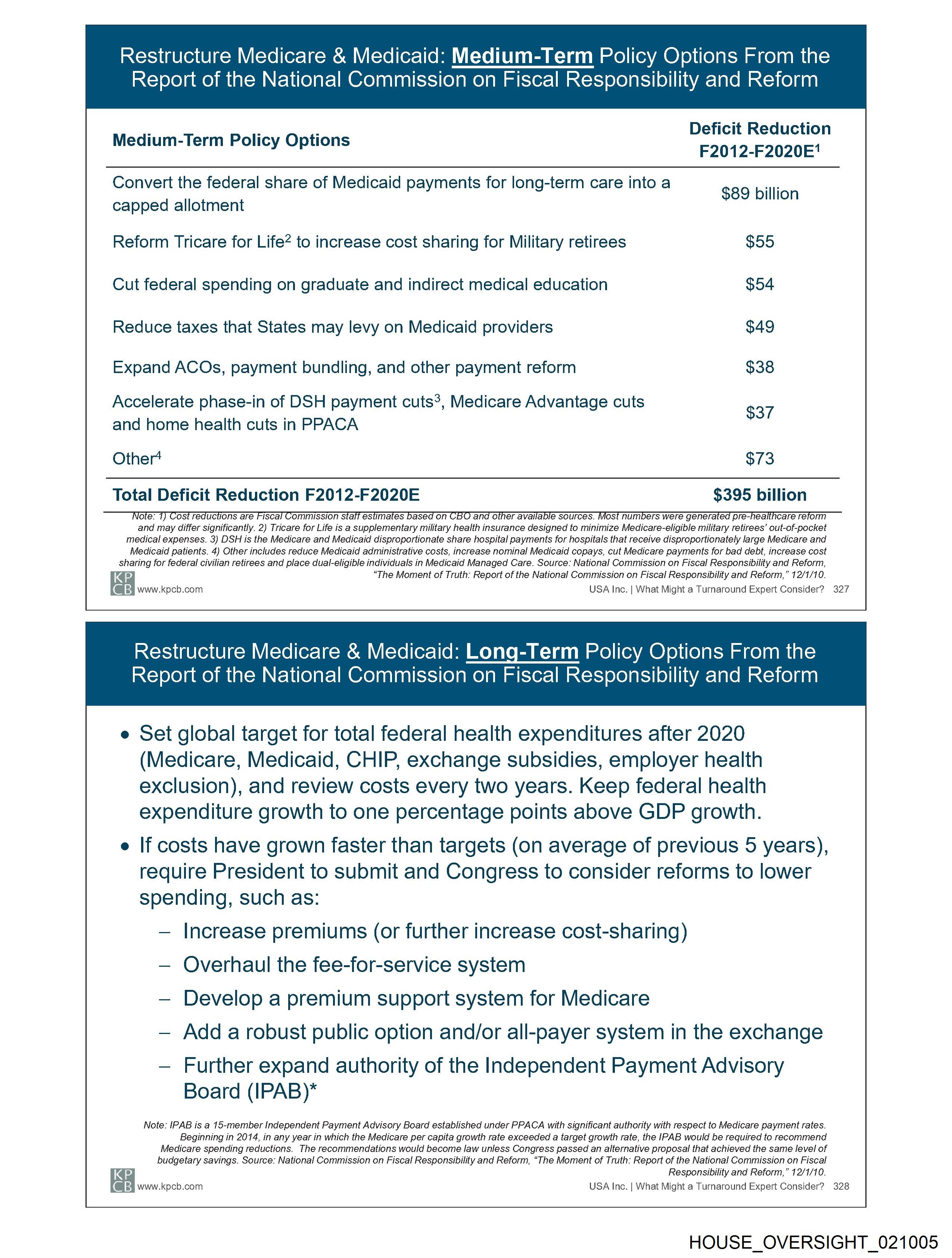 Sharing for federal civilian retirees and place dual-eligible individuals in Medicaid Managed Care. Source: National Commission on Fiscal Responsibility and Reform,