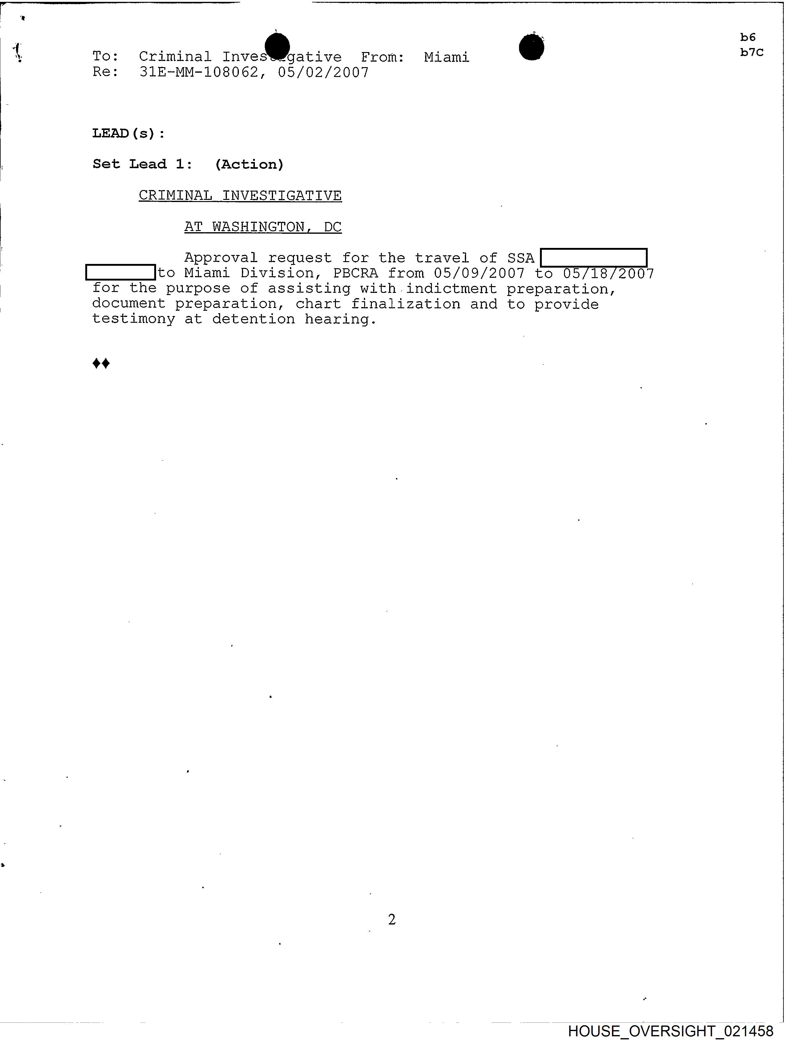 [to Miami Division, PBCRA from 05/09/2007 to 05/18/2007