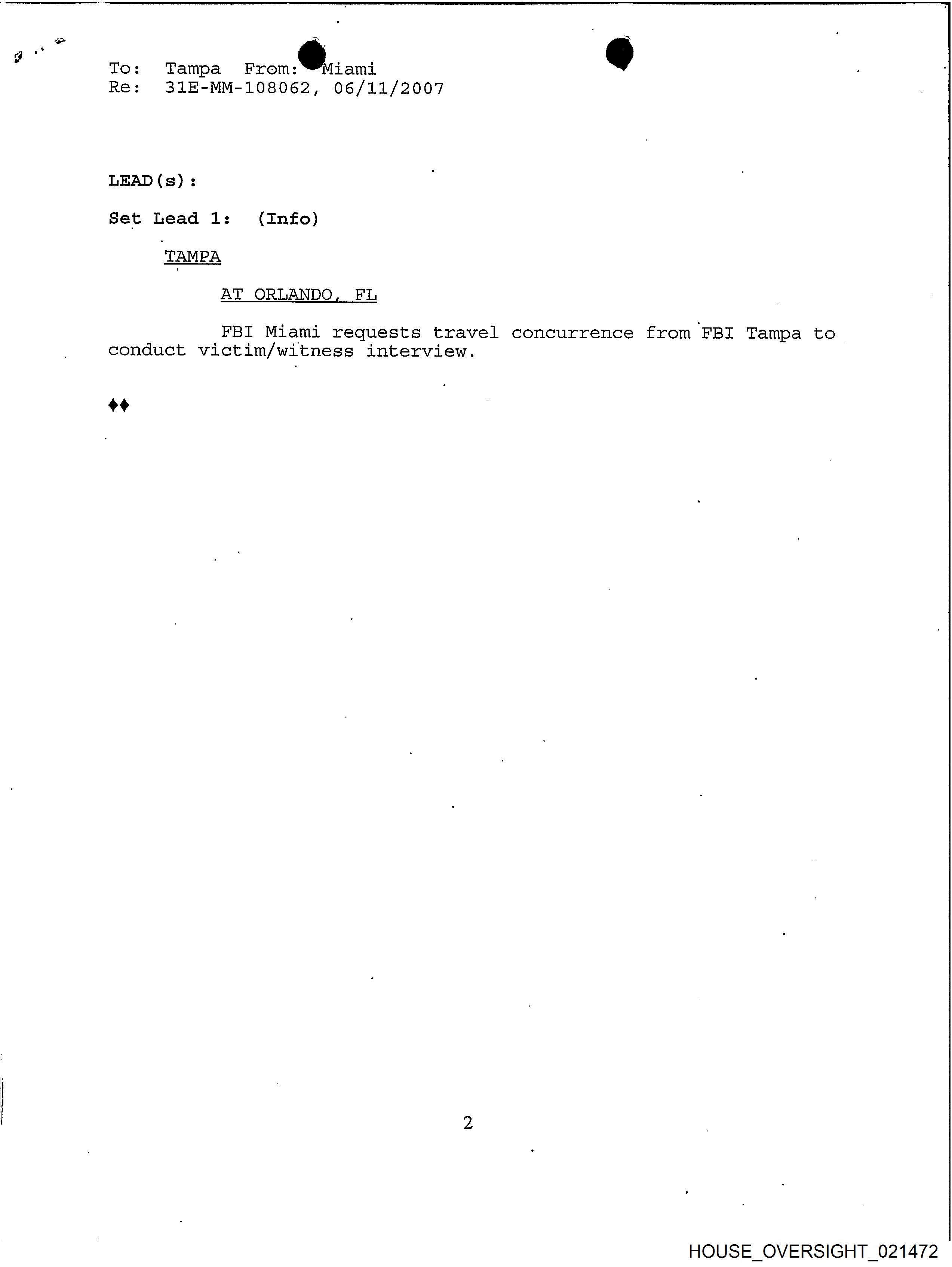 FBI Miami requests travel concurrence from FBI Tampa to