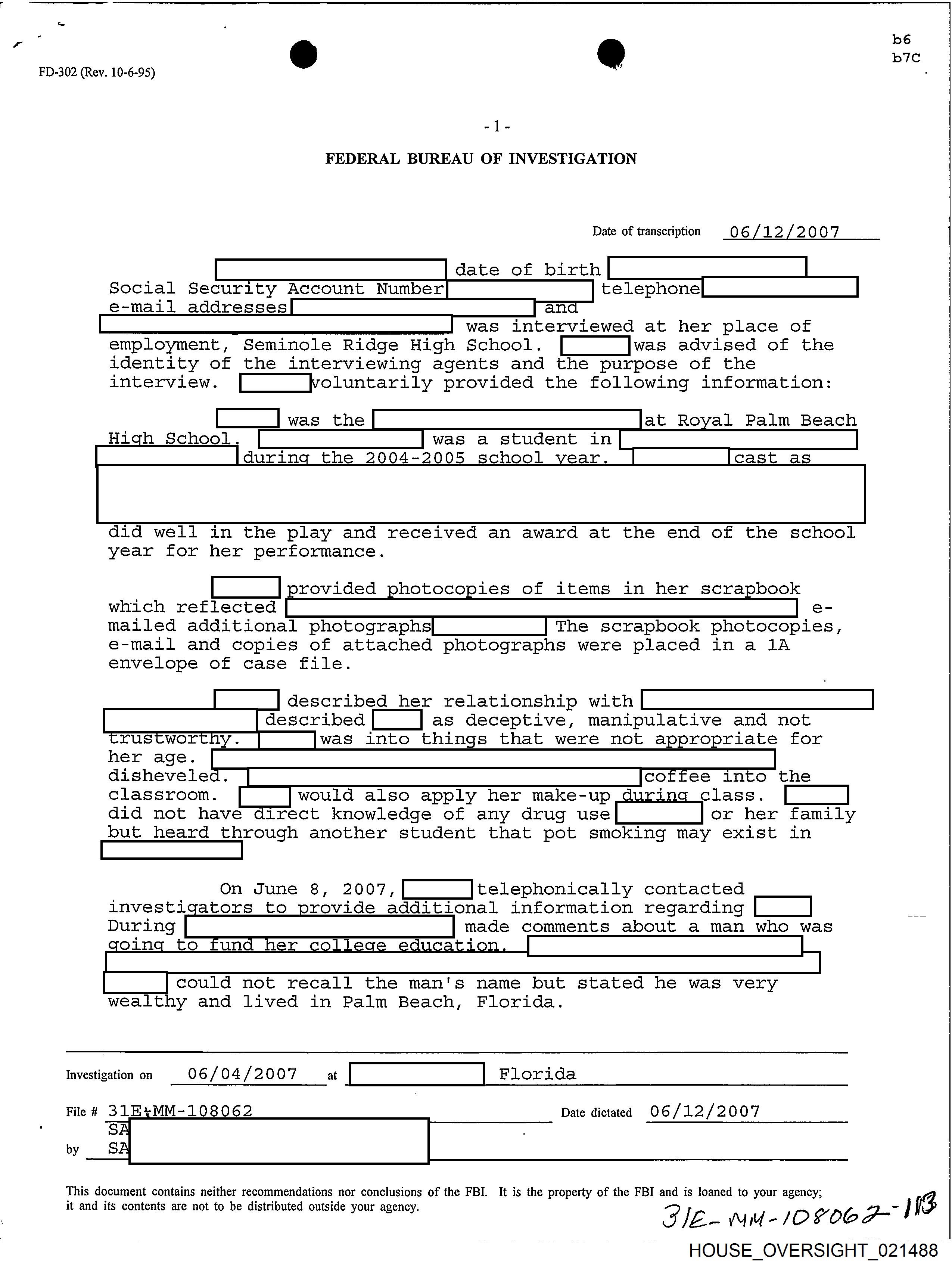 employment, Seminole Ridge High School. [| _]was advised of the