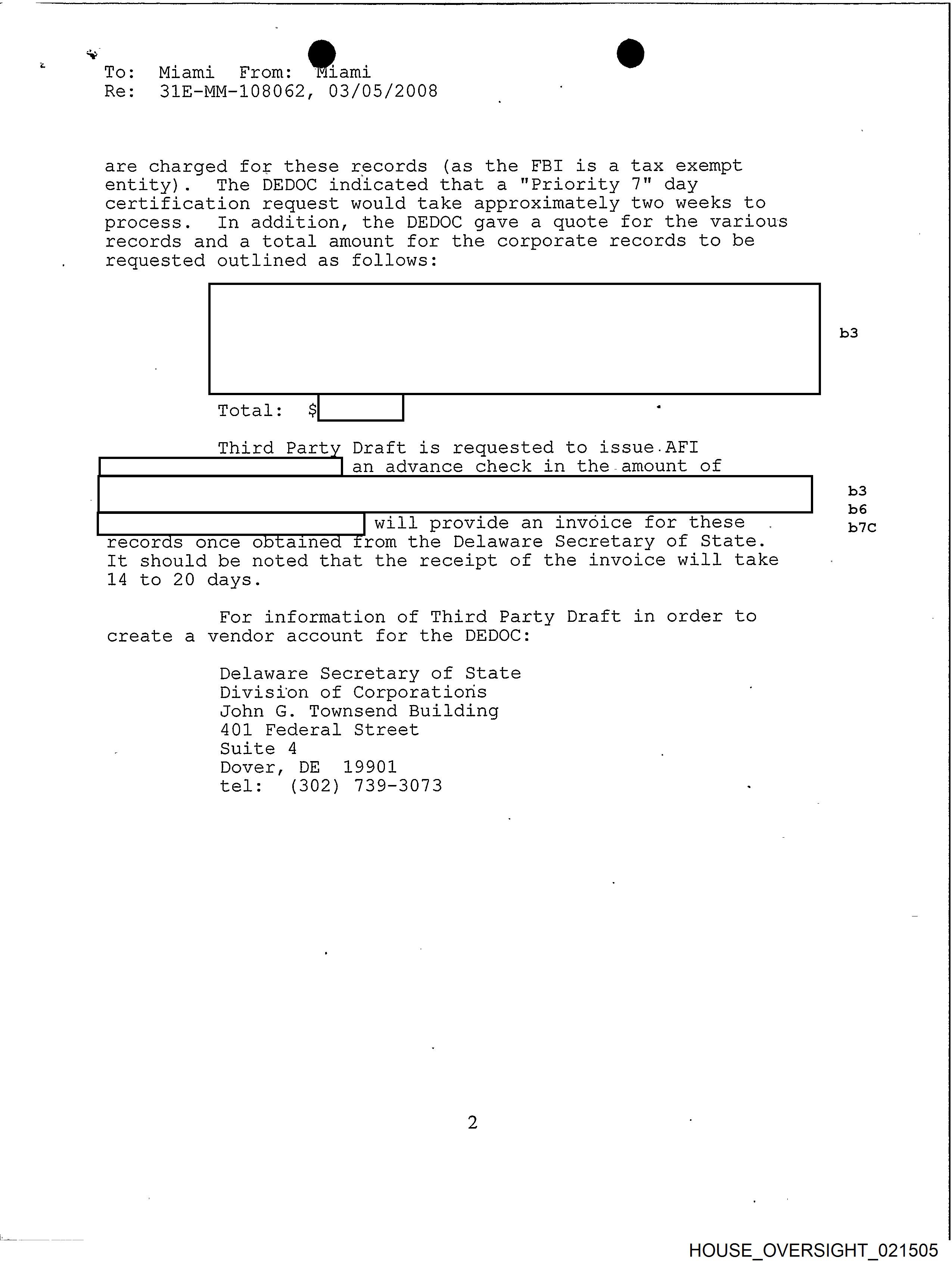rom the Delaware Secretary of State.