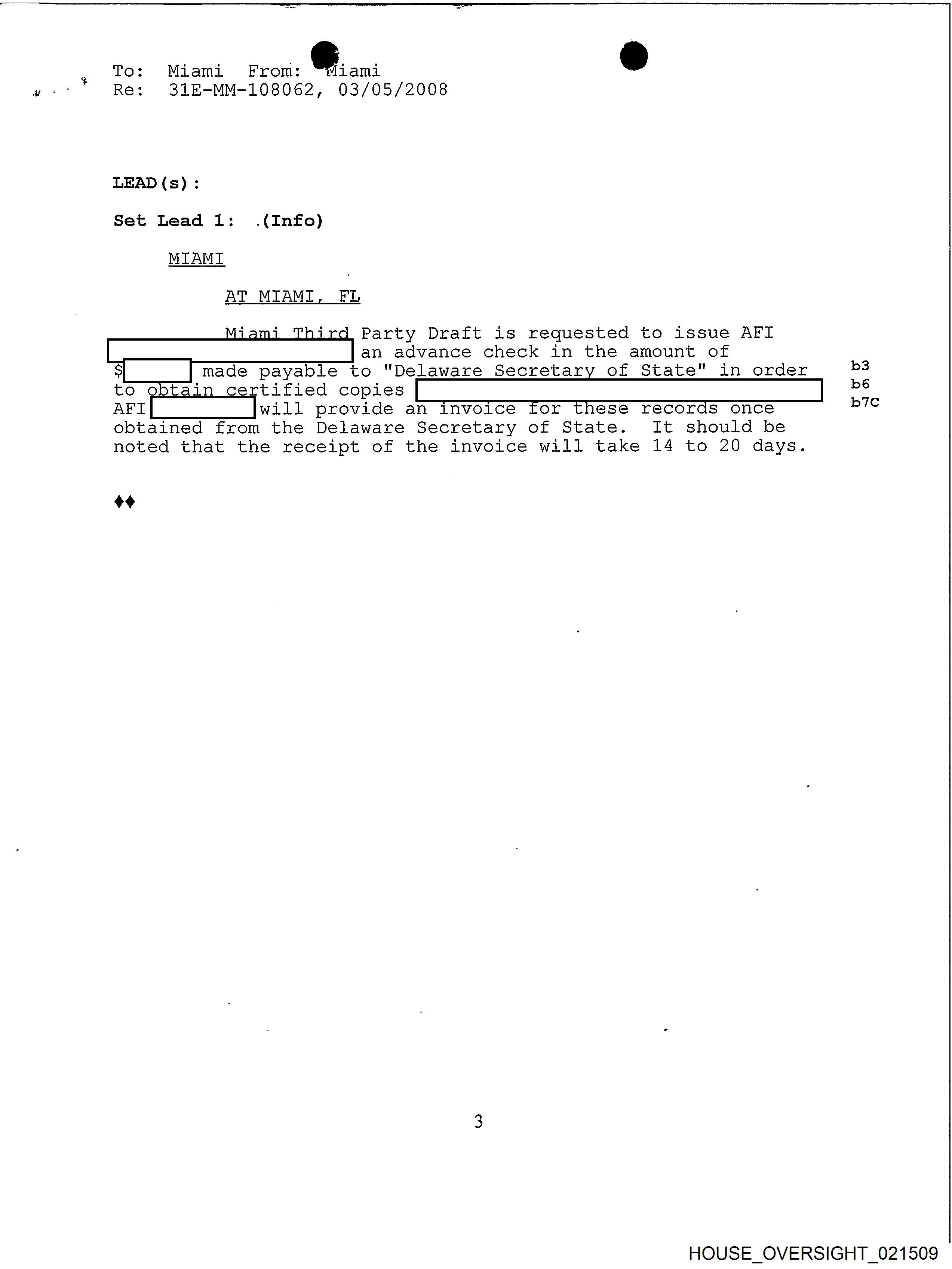 To: Miami From: 6... @