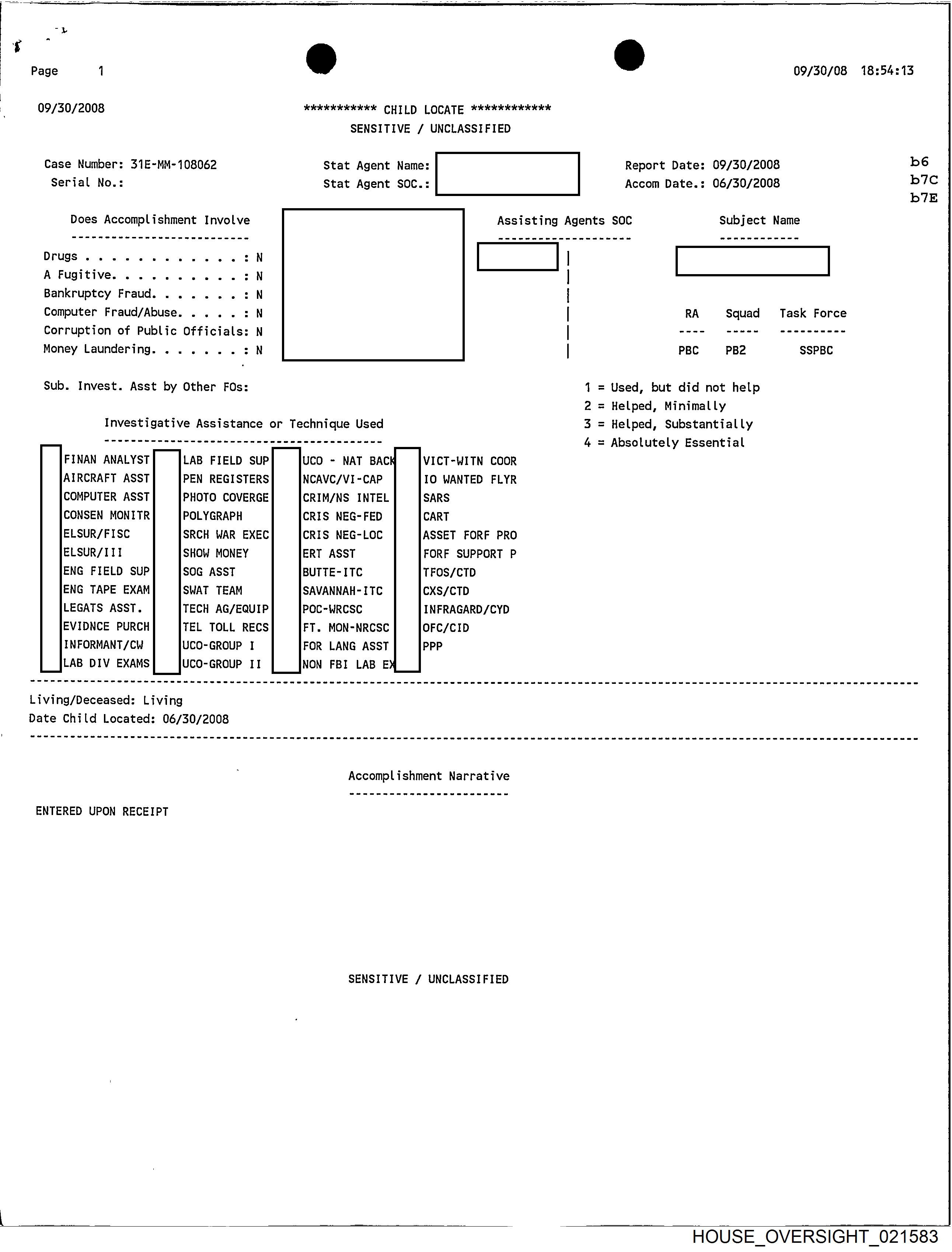 Case Number: 31E-MM-108062 Stat Agent Name: Report Date: 09/30/2008 b6