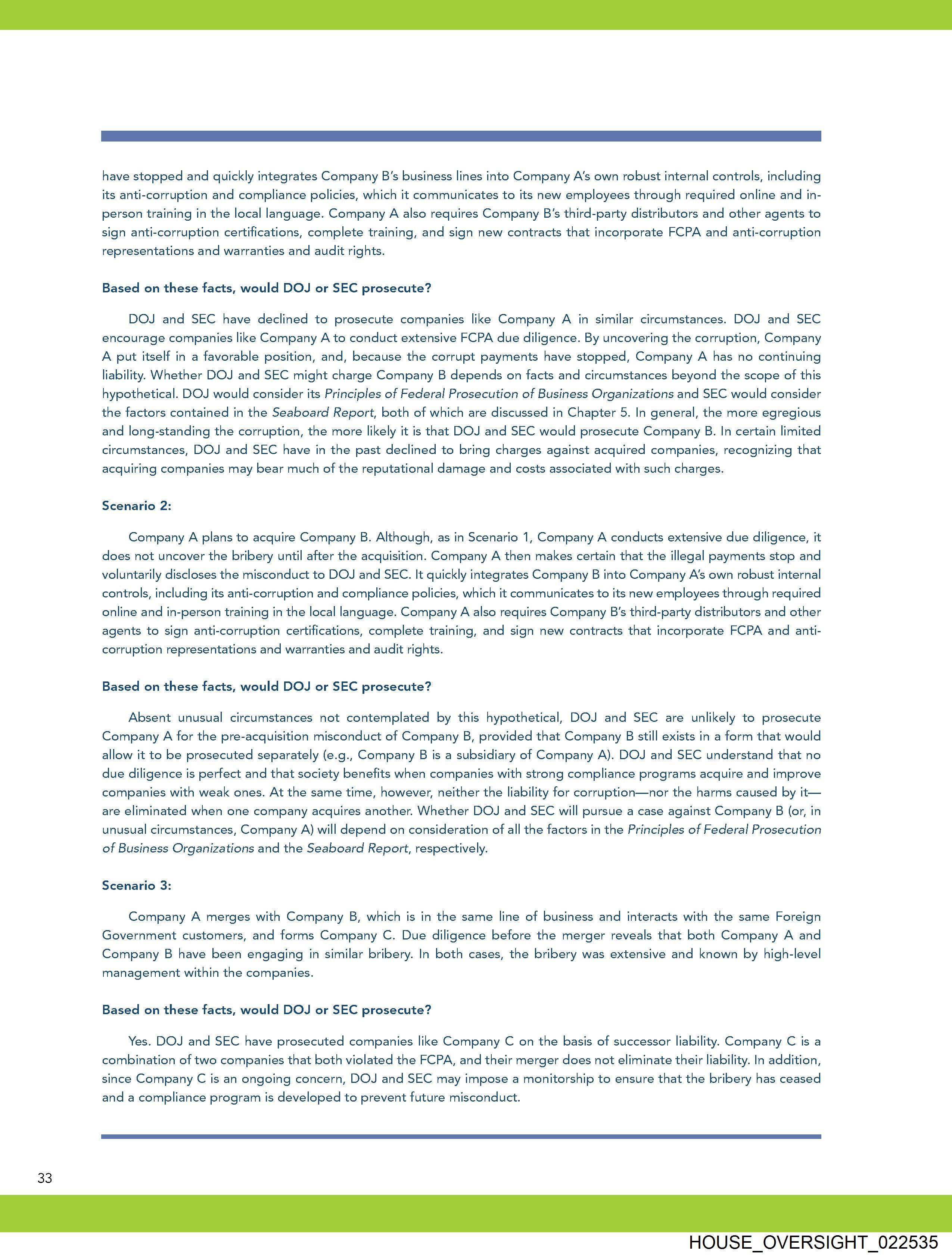 and long-standing the corruption, the more likely it is that DOJ and SEC would prosecute Company B. In certain limited