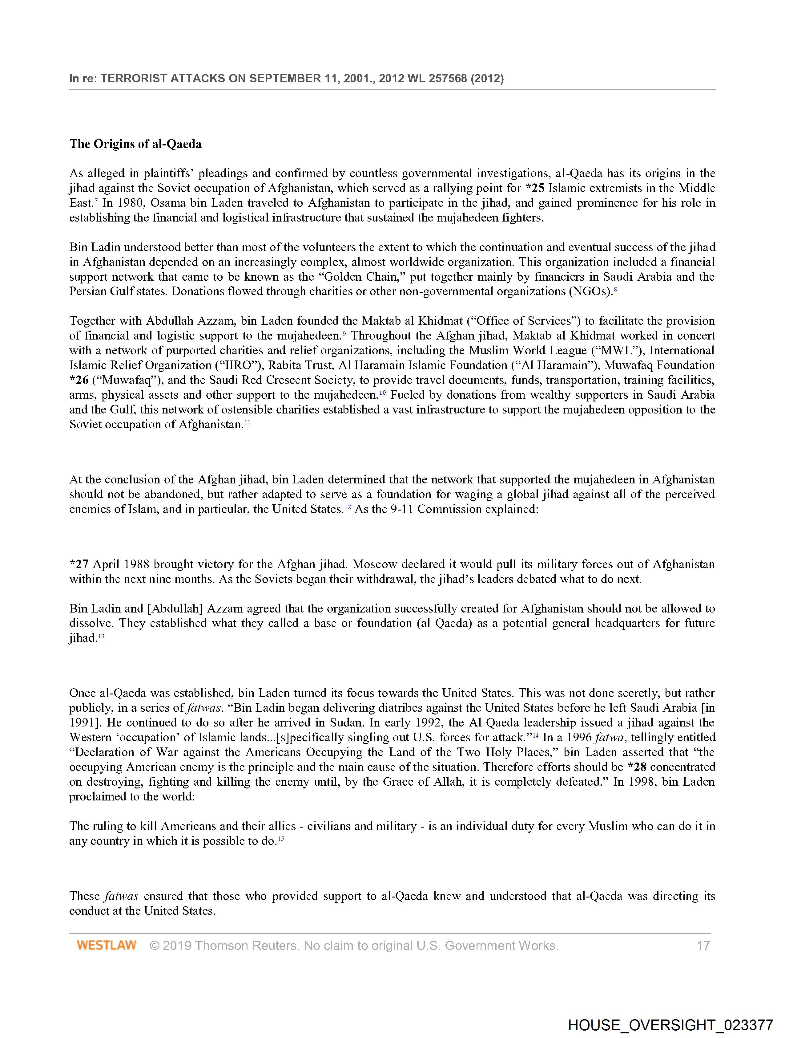 As alleged in plaintiffs’ pleadings and confirmed by countless governmental investigations, al-Qaeda has its origins in the