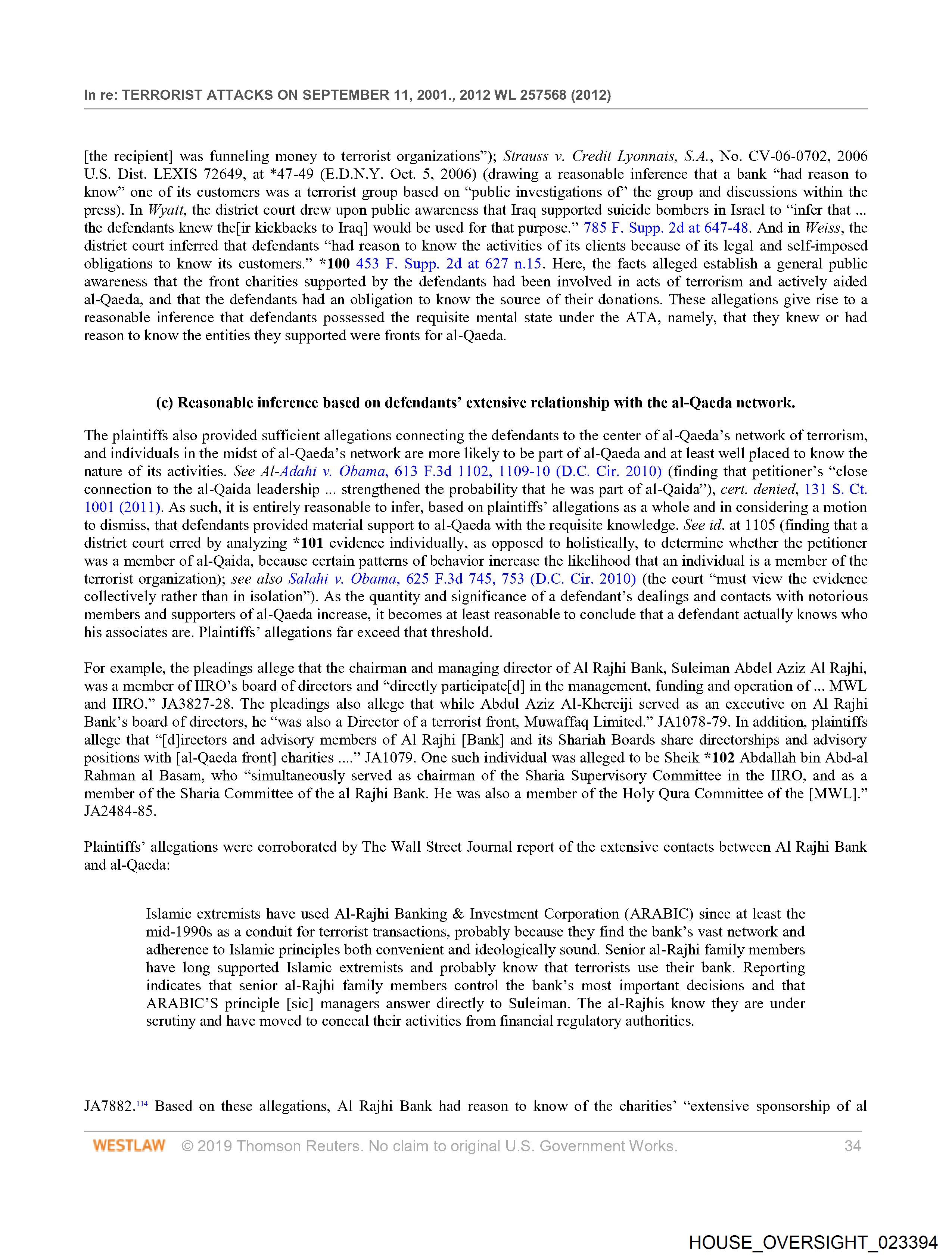 (c) Reasonable inference based on defendants’ extensive relationship with the al-Qaeda network.