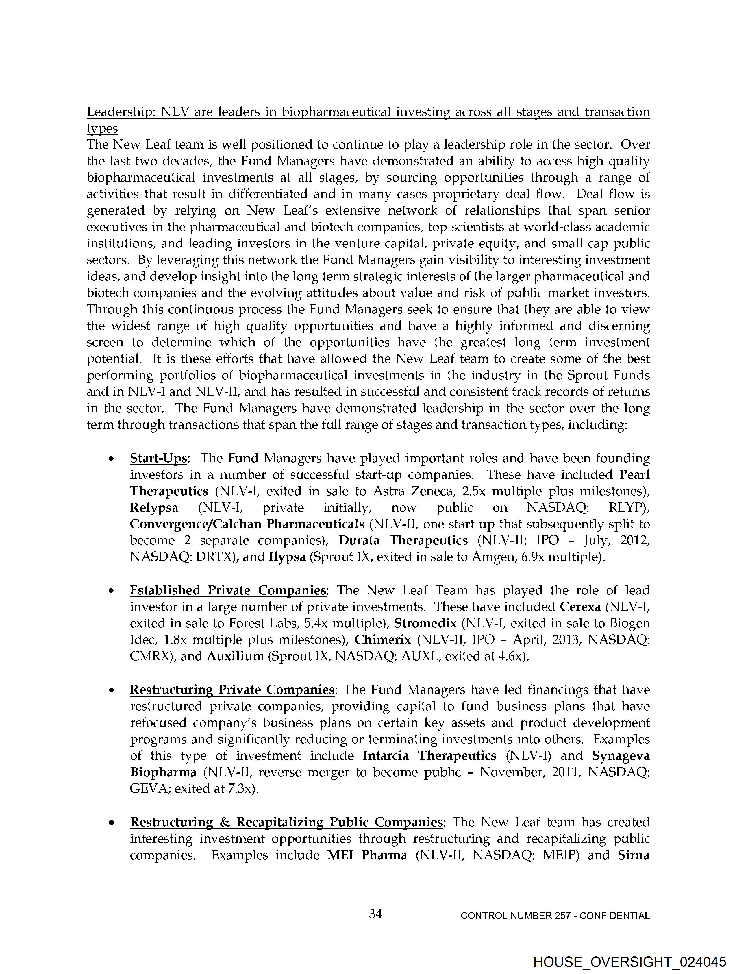 e Established Private Companies: The New Leaf Team has played the role of lead