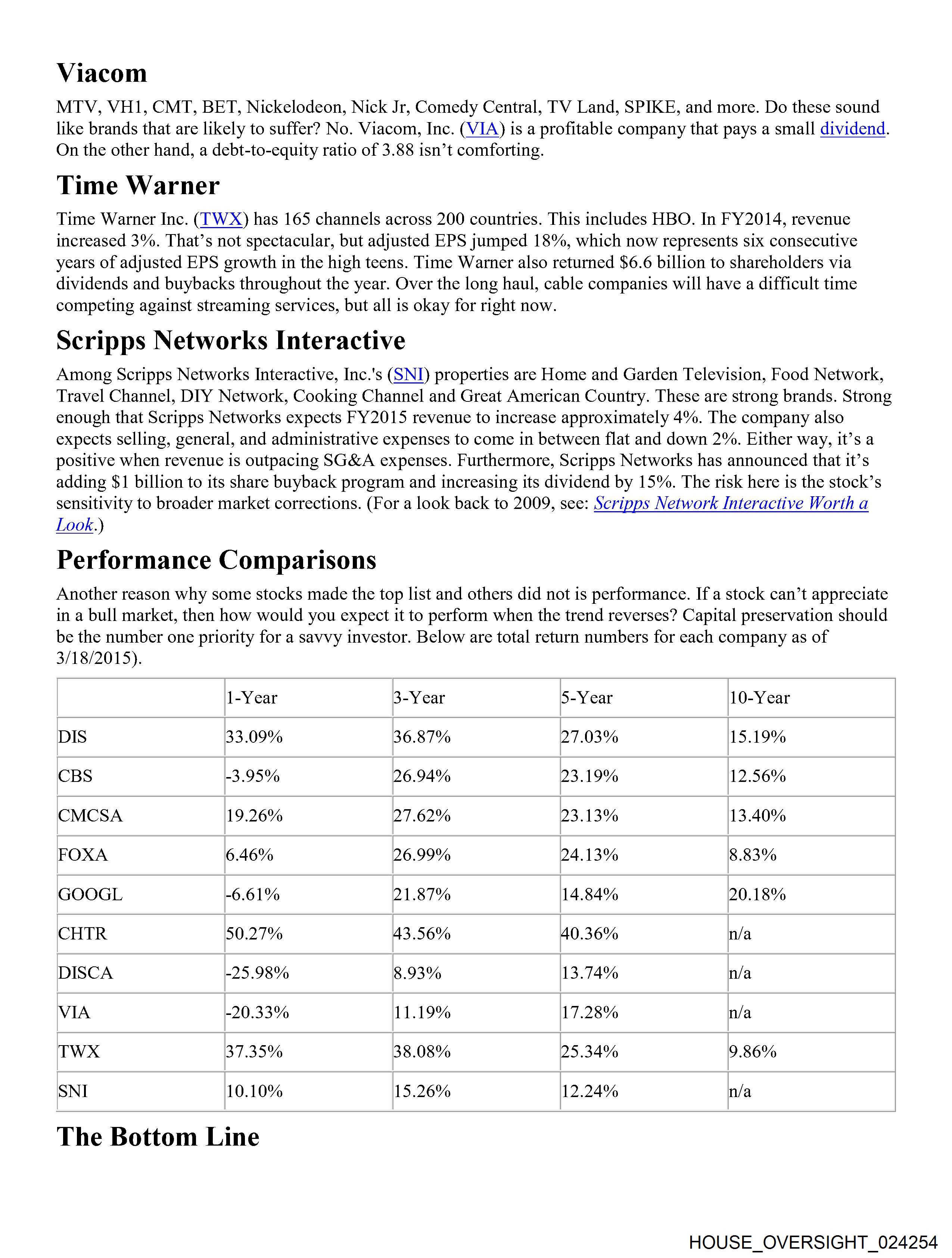 dividends and buybacks throughout the year. Over the long haul, cable companies will have a difficult time