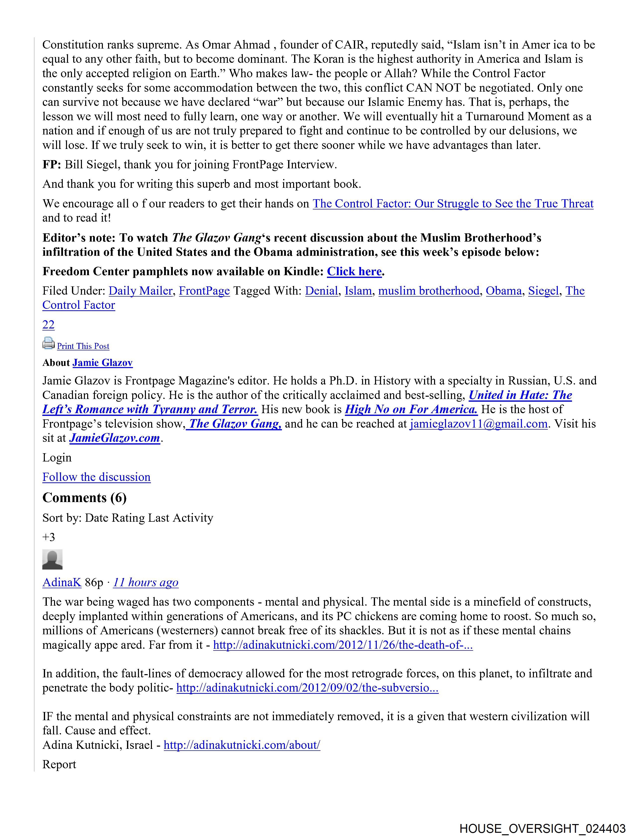 Filed Under: Daily Mailer, FrontPage Tagged With: Denial, Islam, muslim brotherhood, Obama, Siegel, The