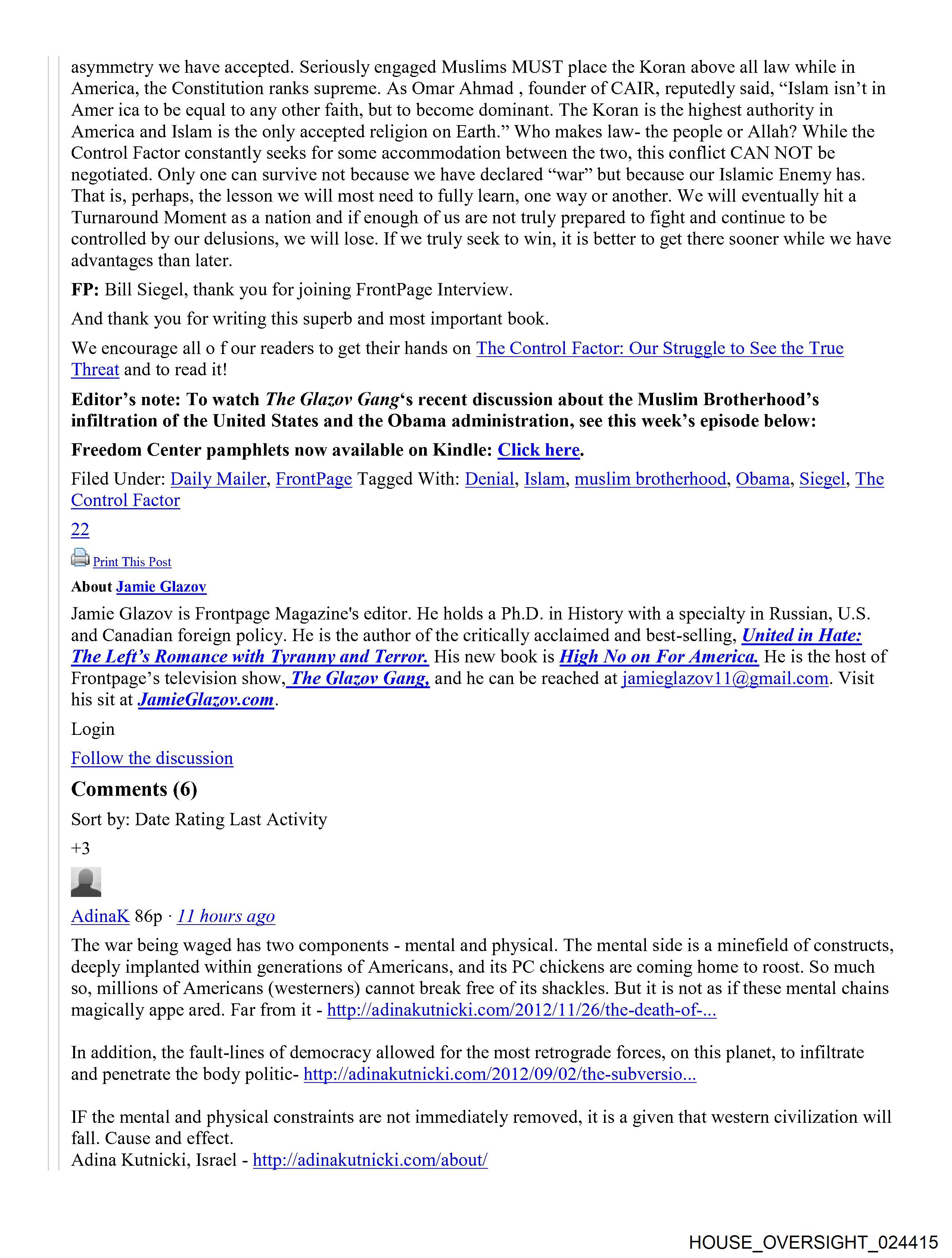 Filed Under: Daily Mailer, FrontPage Tagged With: Denial, Islam, muslim brotherhood, Obama, Siegel, The