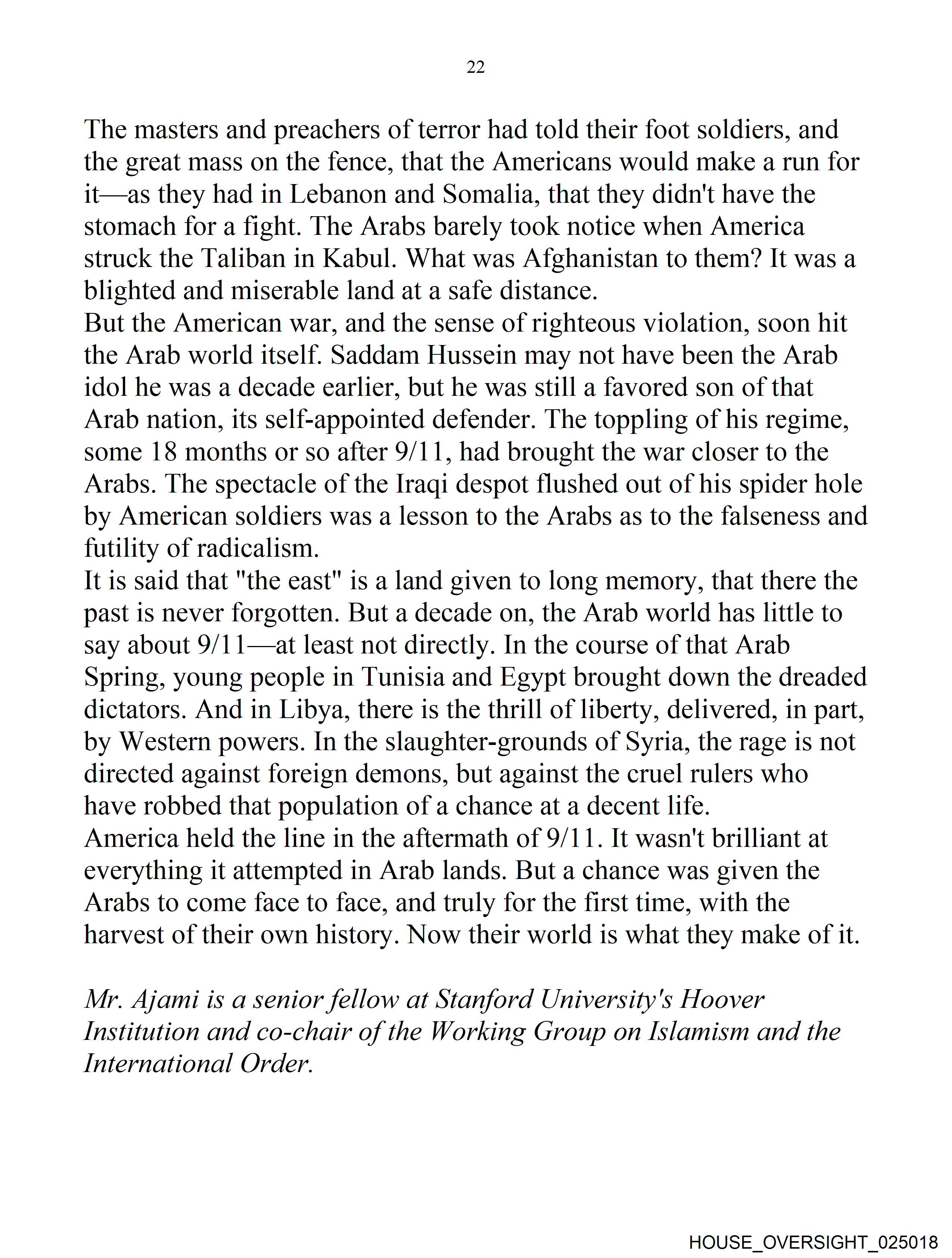 Mr. Ajami is a senior fellow at Stanford University's Hoover