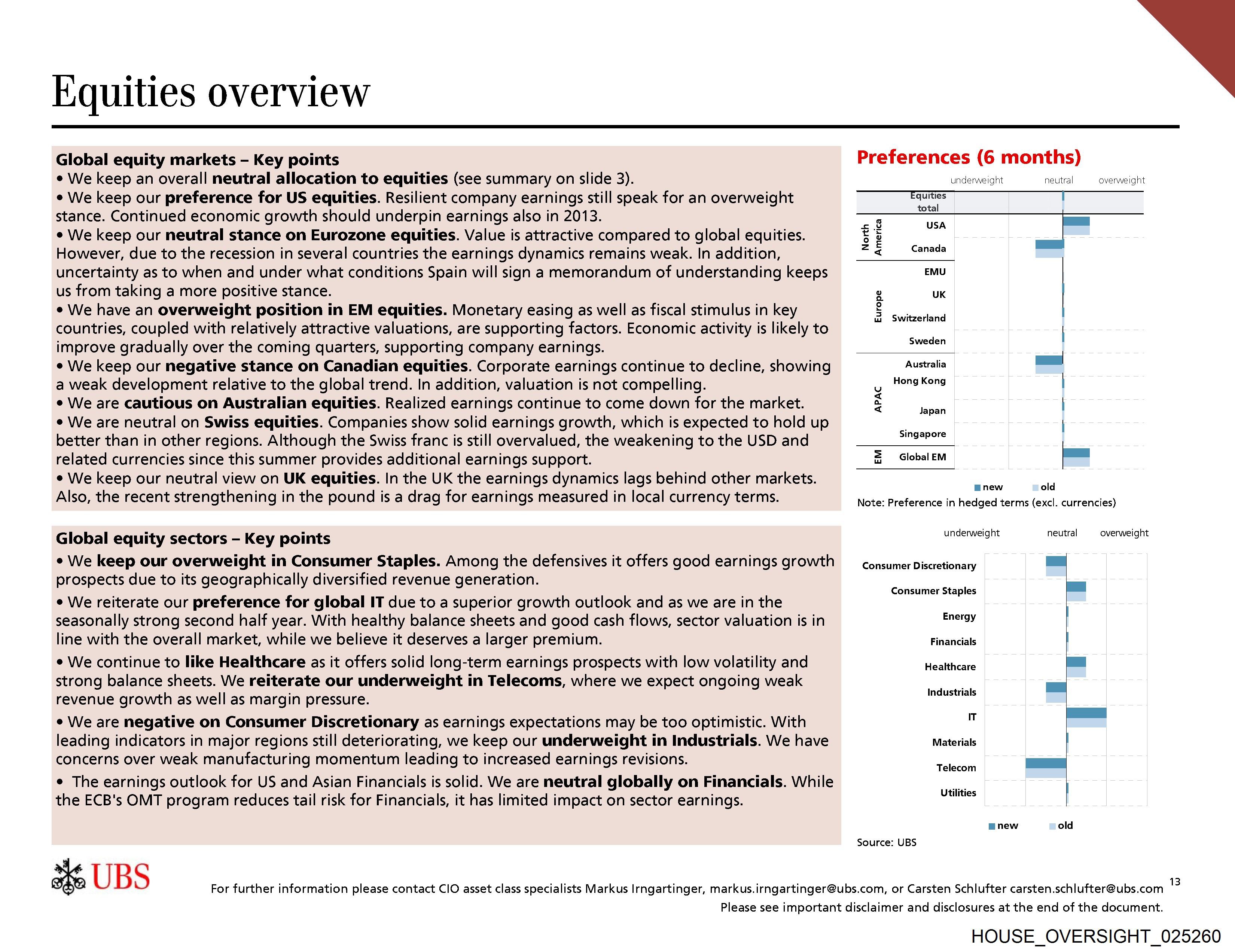 ¢ We keep an overall neutral allocation to equities (see summary on slide 3).