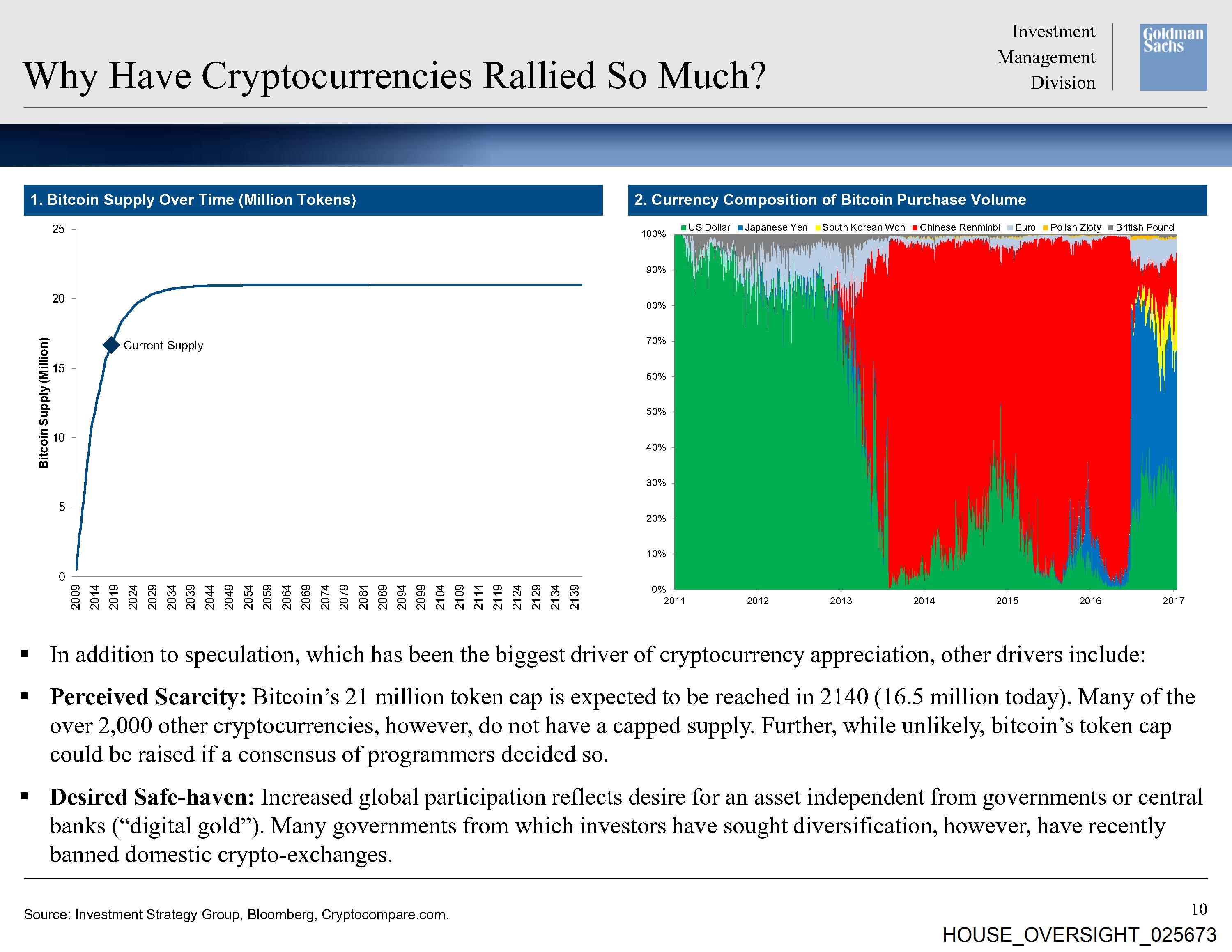 Source: Investment Strategy Group, Bloomberg, Cryptocompare.com.