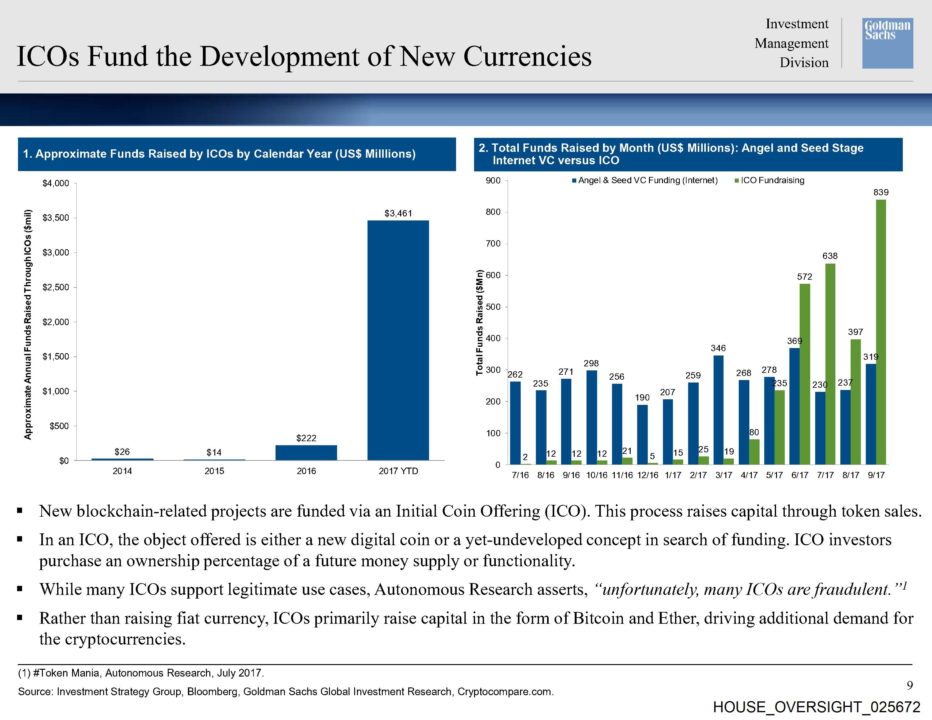Source: Investment Strategy Group, Bloomberg, Goldman Sachs Global Investment Research, Cryptocompare.com. 9