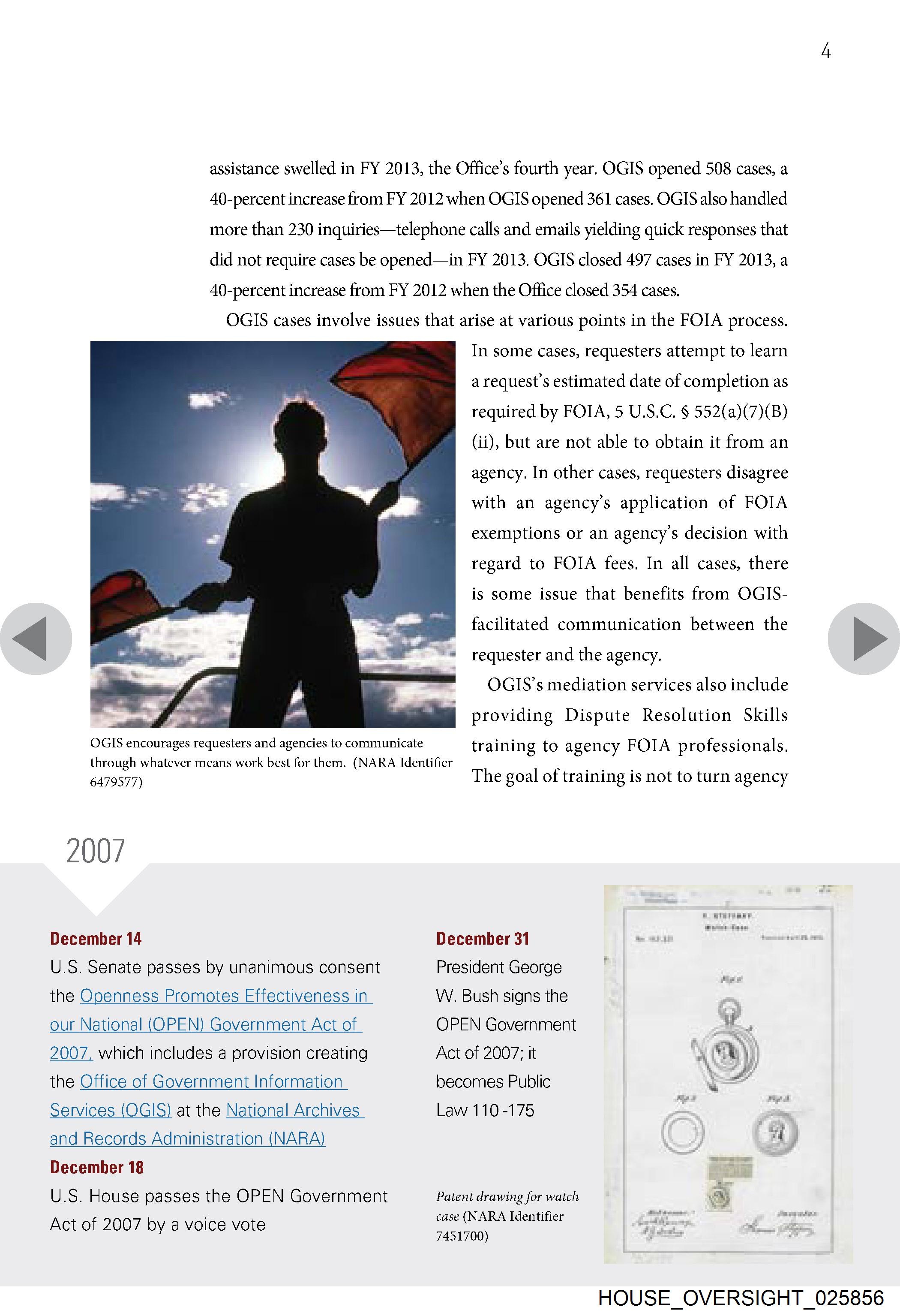 Services (OGIS) at the National Archives Law 110-175 iN