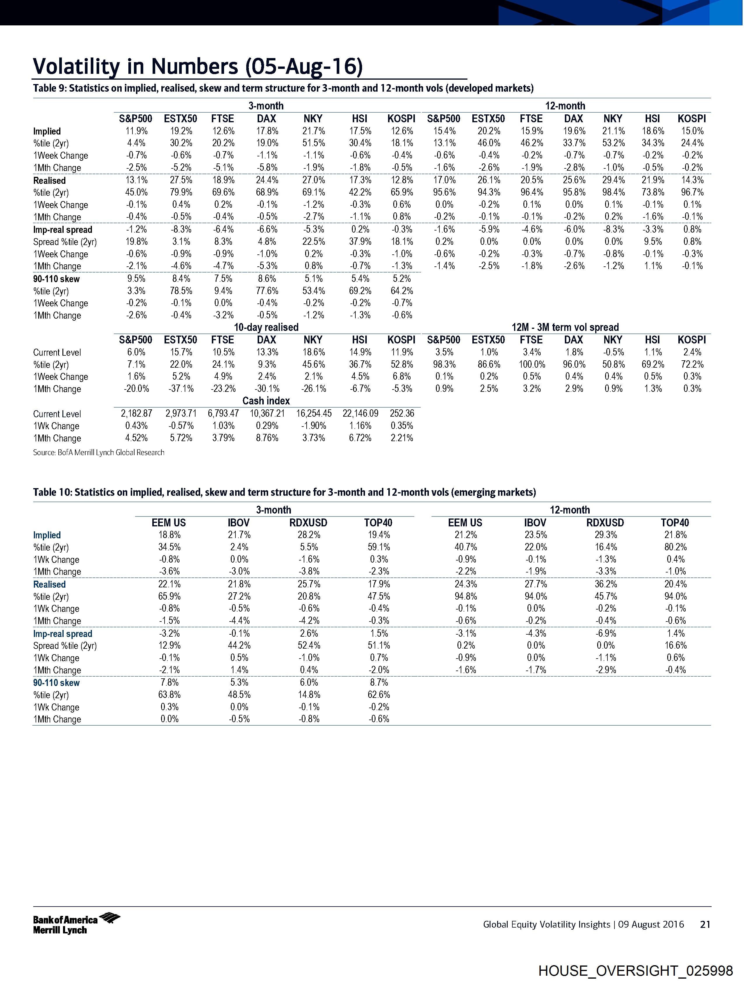 Bankof America “> Global Equity Volatility Insights | 09 August 2016 21