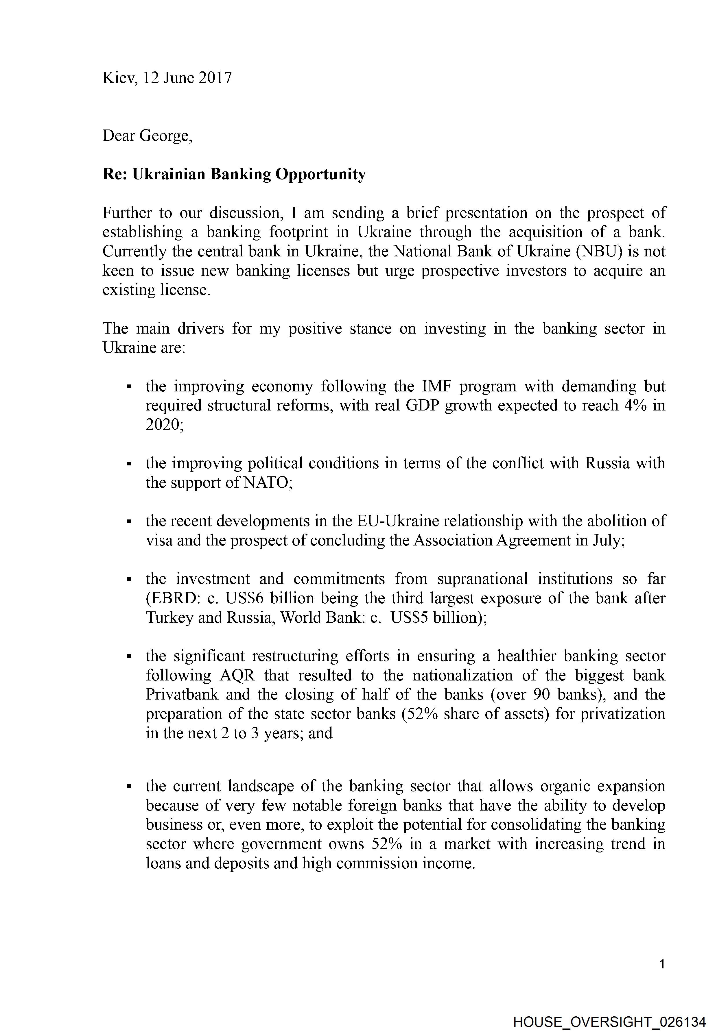 establishing a banking footprint in Ukraine through the acquisition of a bank.