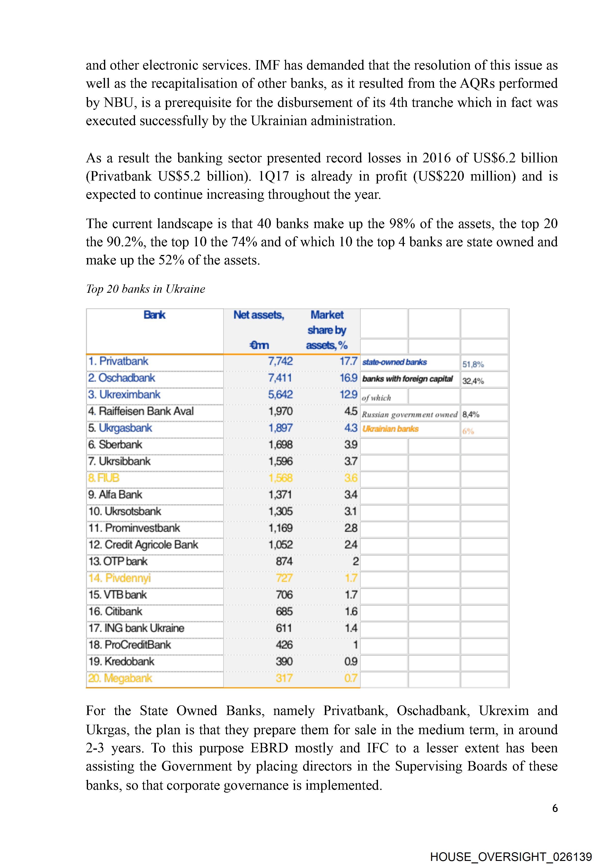 For the State Owned Banks, namely Privatbank, Oschadbank, Ukrexim and