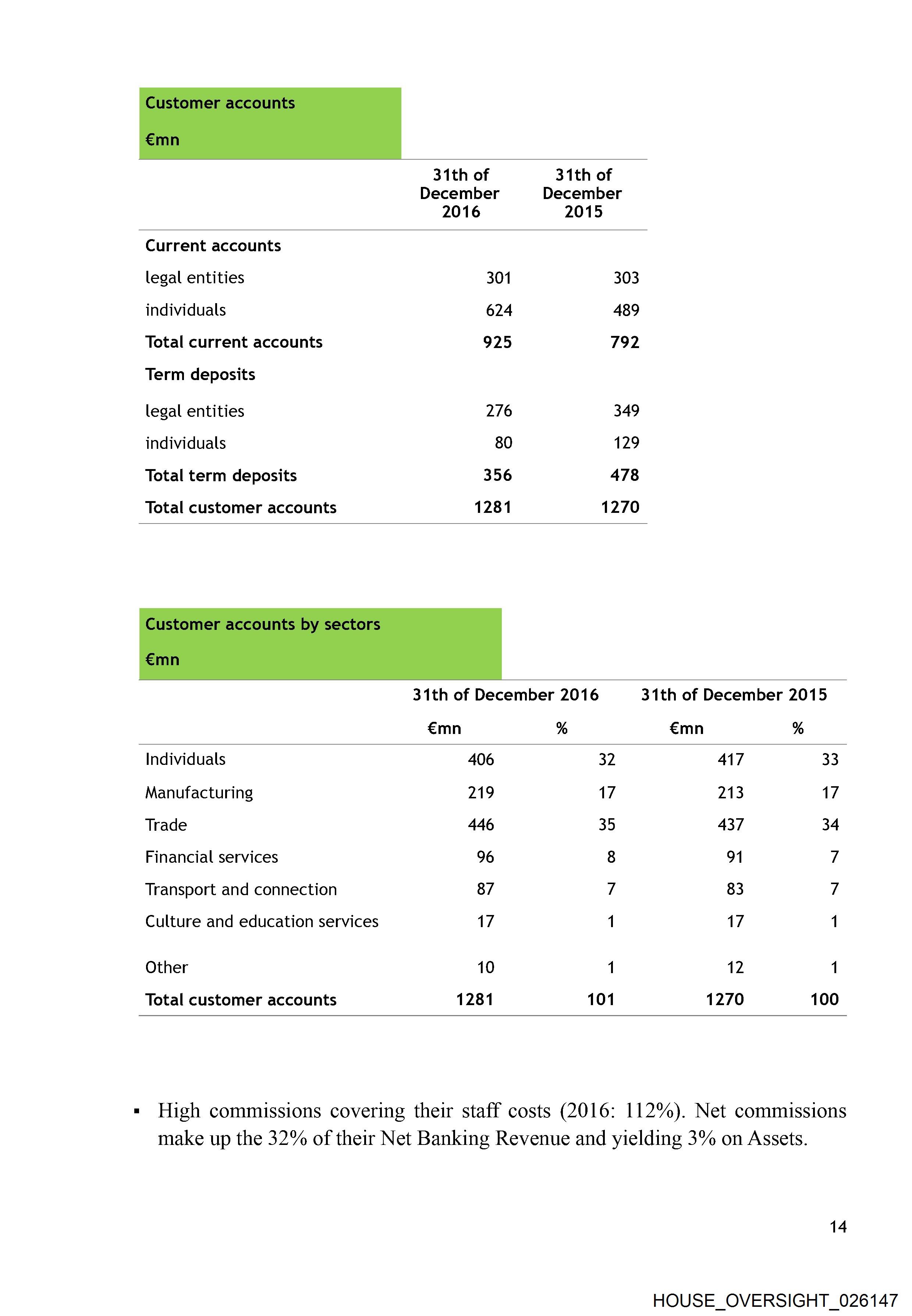 « High commissions covering their staff costs (2016: 112%). Net commissions