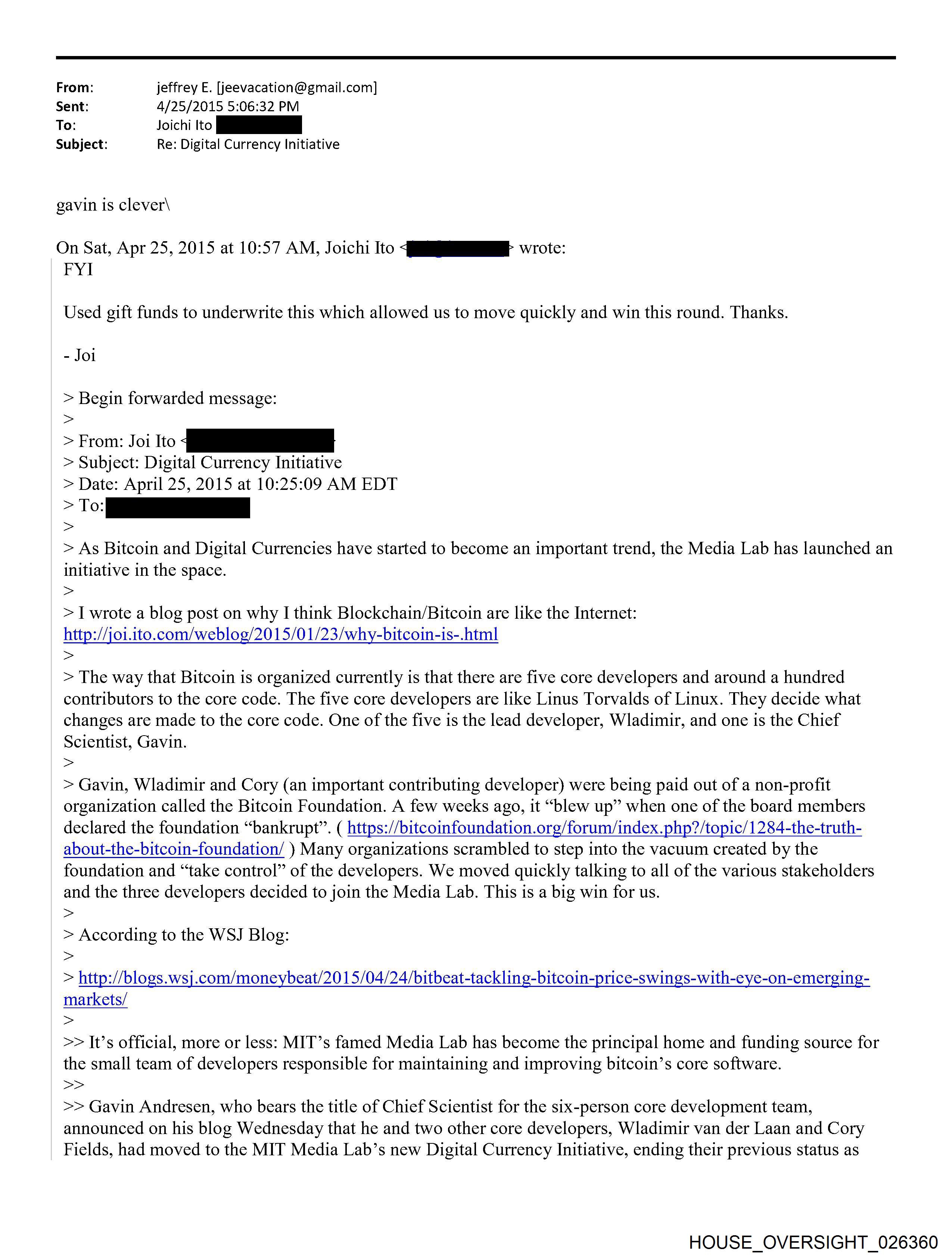 Fields, had moved to the MIT Media Lab’s new Digital Currency Initiative, ending their previous status as
