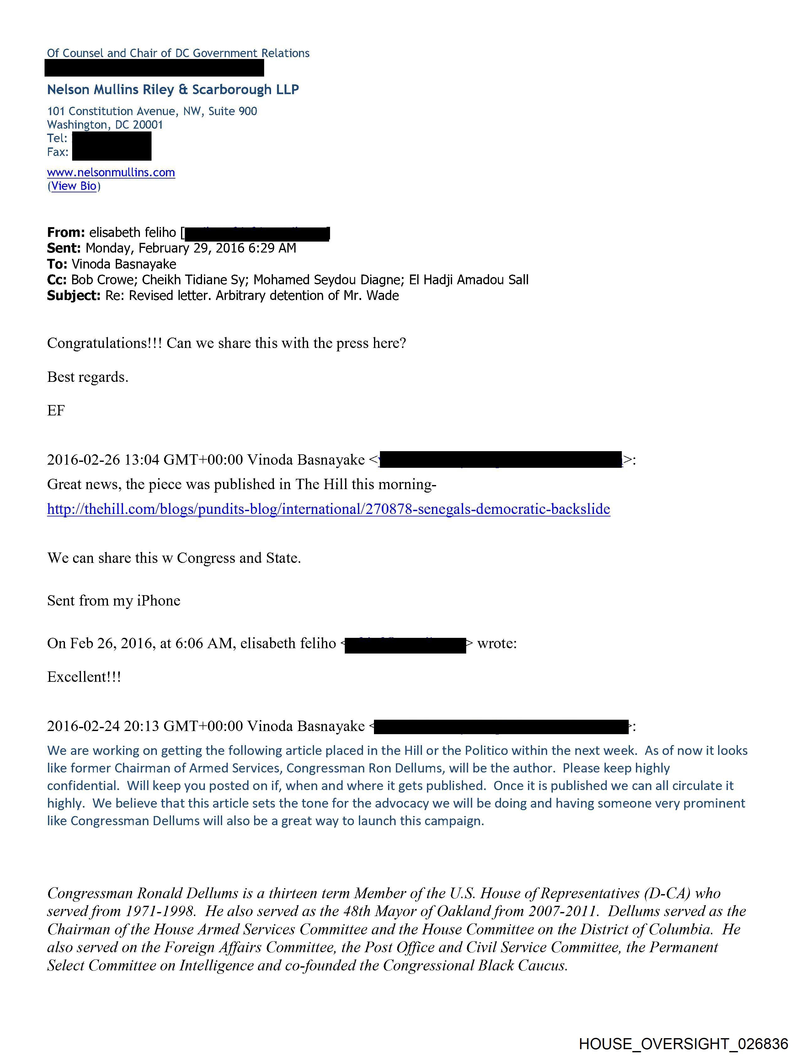 like former Chairman of Armed Services, Congressman Ron Dellums, will be the author. Please keep highly