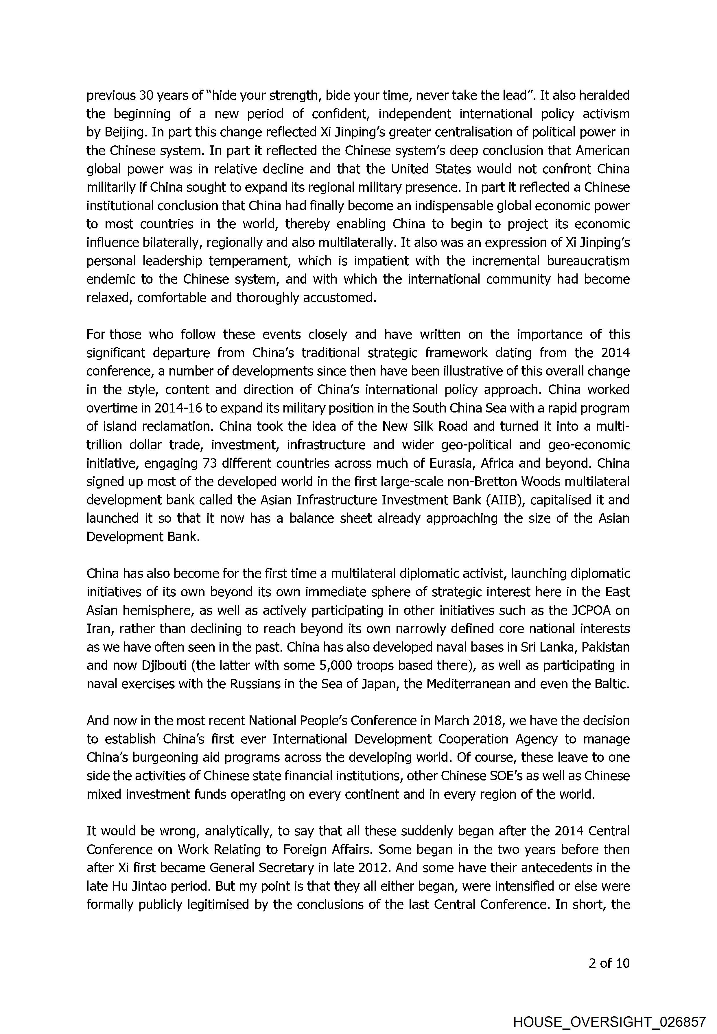 influence bilaterally, regionally and also multilaterally. It also was an expression of Xi Jinping’s