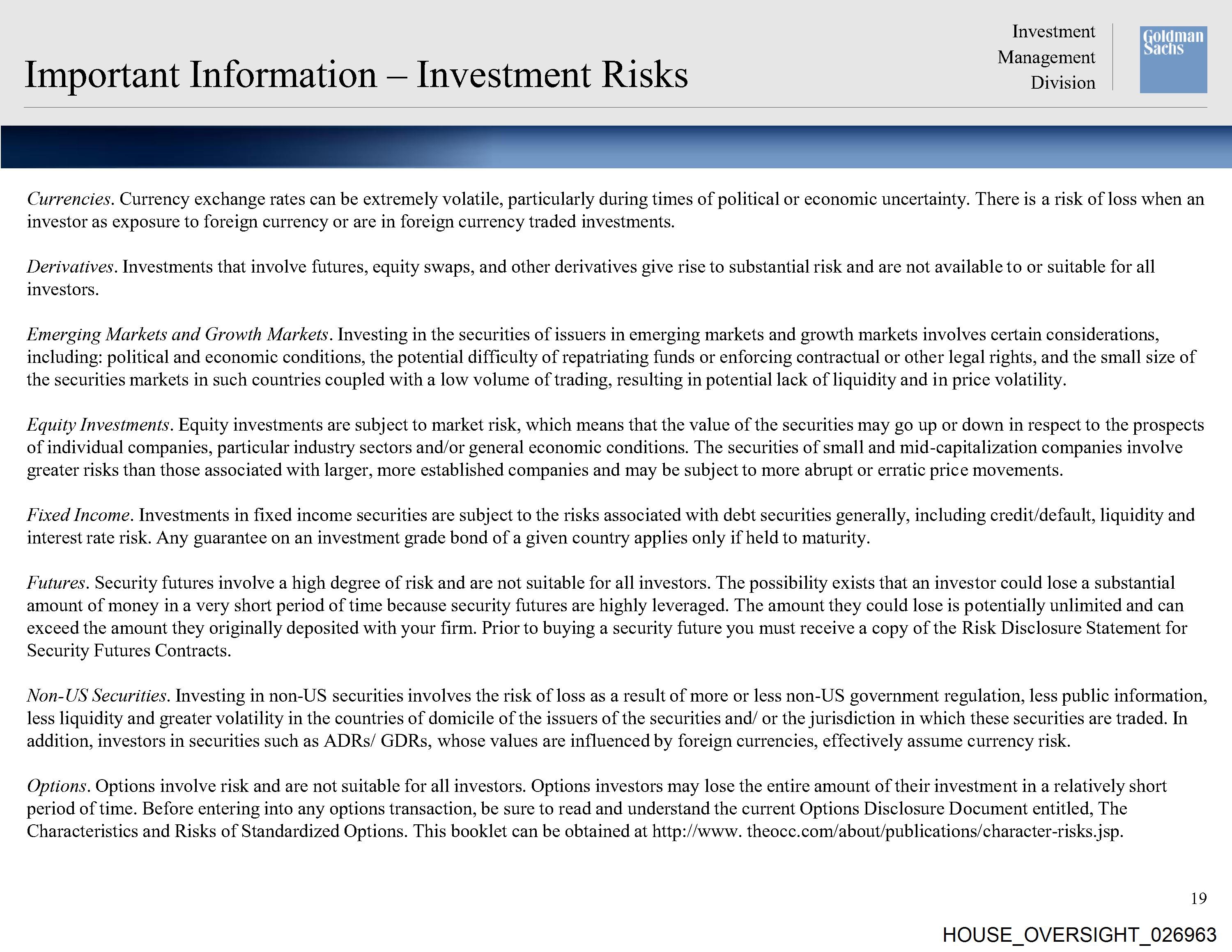 Important Information — Investment Risks Division