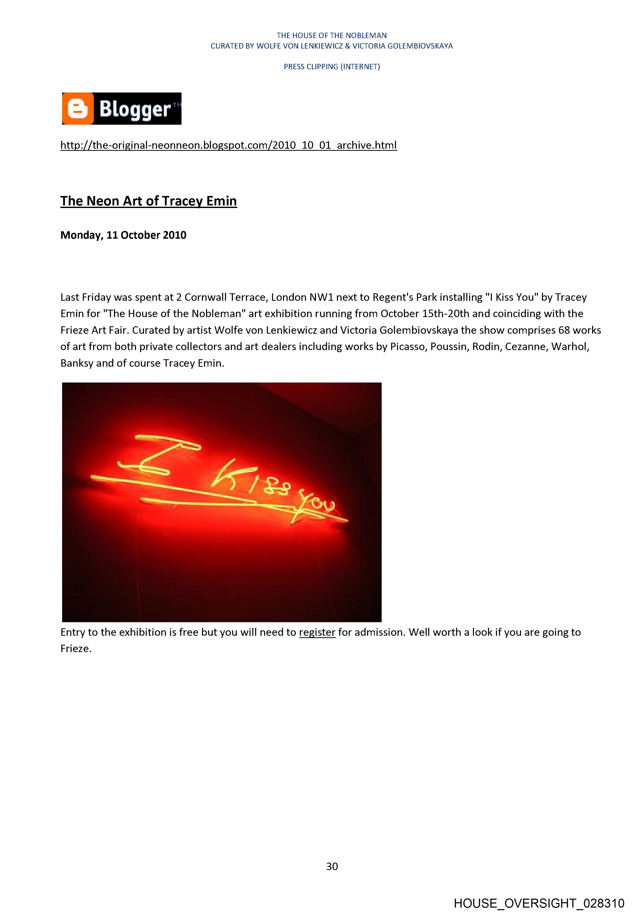 Emin for "The House of the Nobleman" art exhibition running from October 15th-20th and coinciding with the