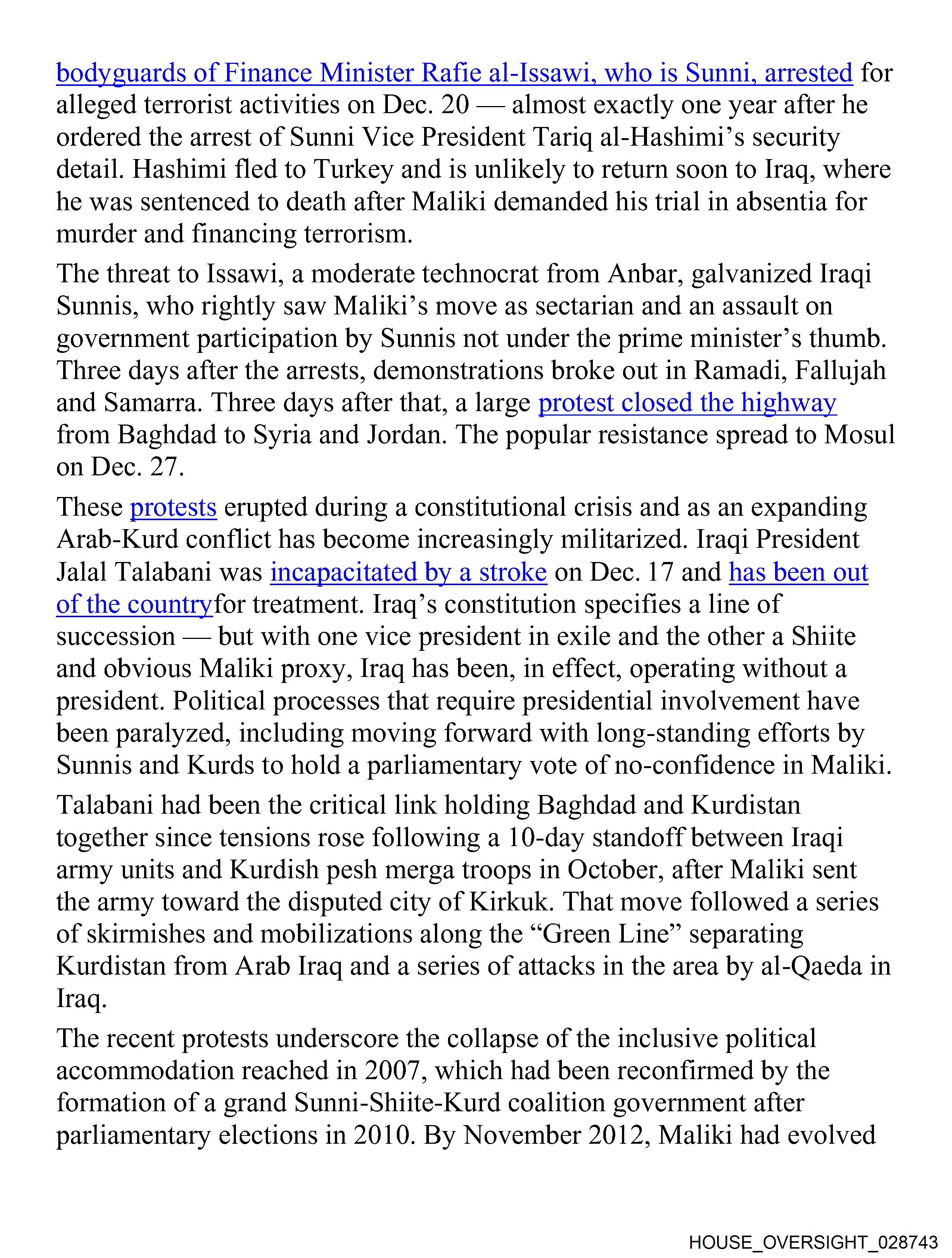 Sunnis, who rightly saw Maliki’s move as sectarian and an assault on
