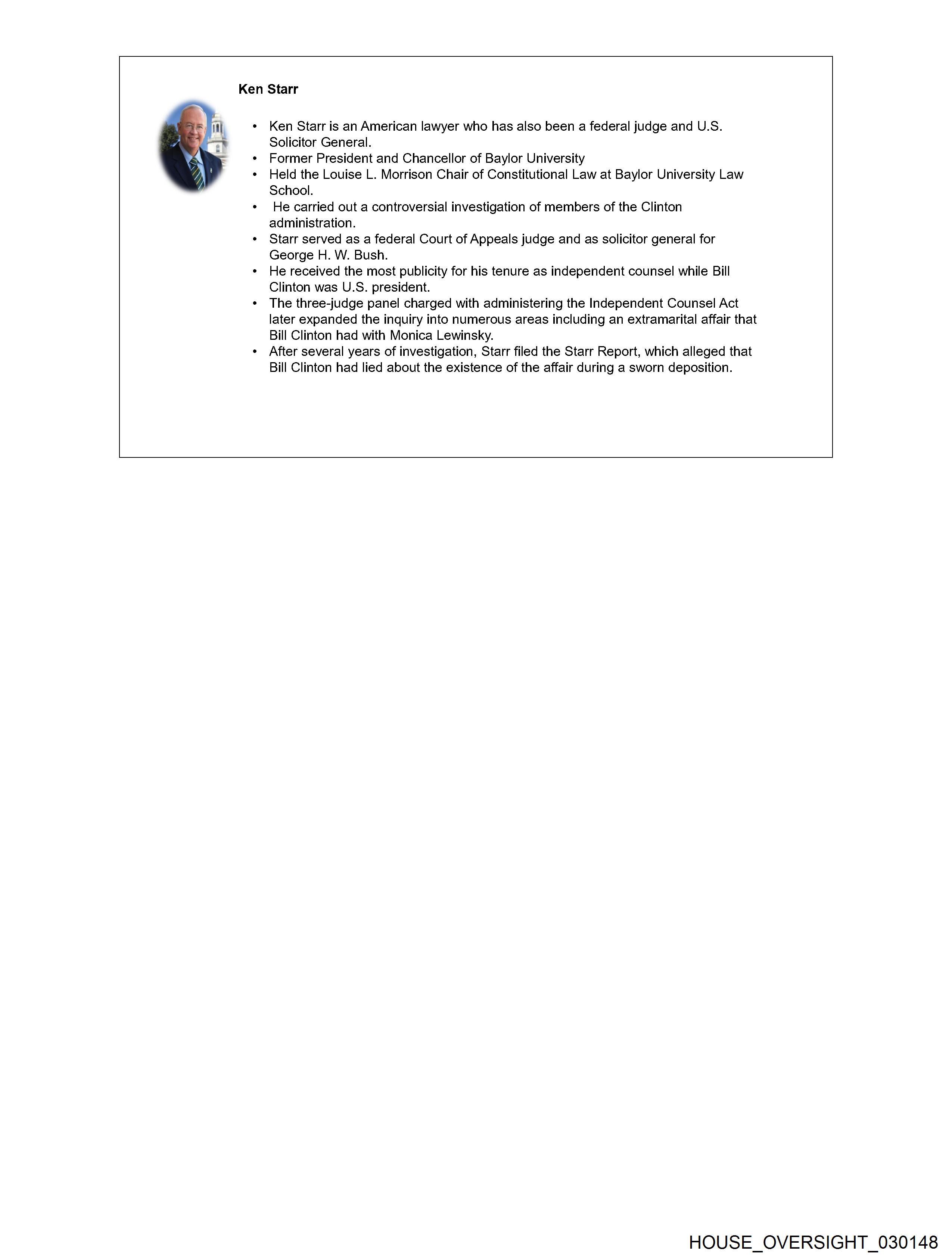 ¢ After several years of investigation, Starr filed the Starr Report, which alleged that