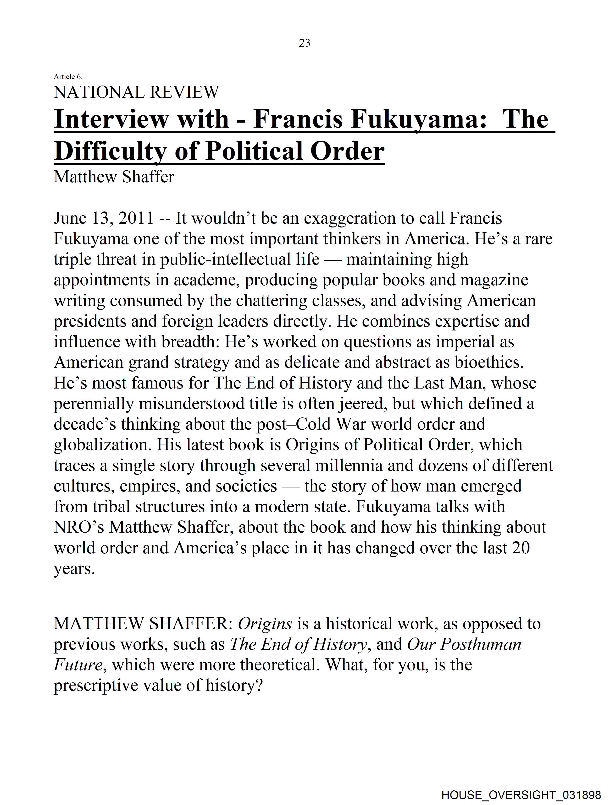 Interview with - Francis Fukuyama: The
