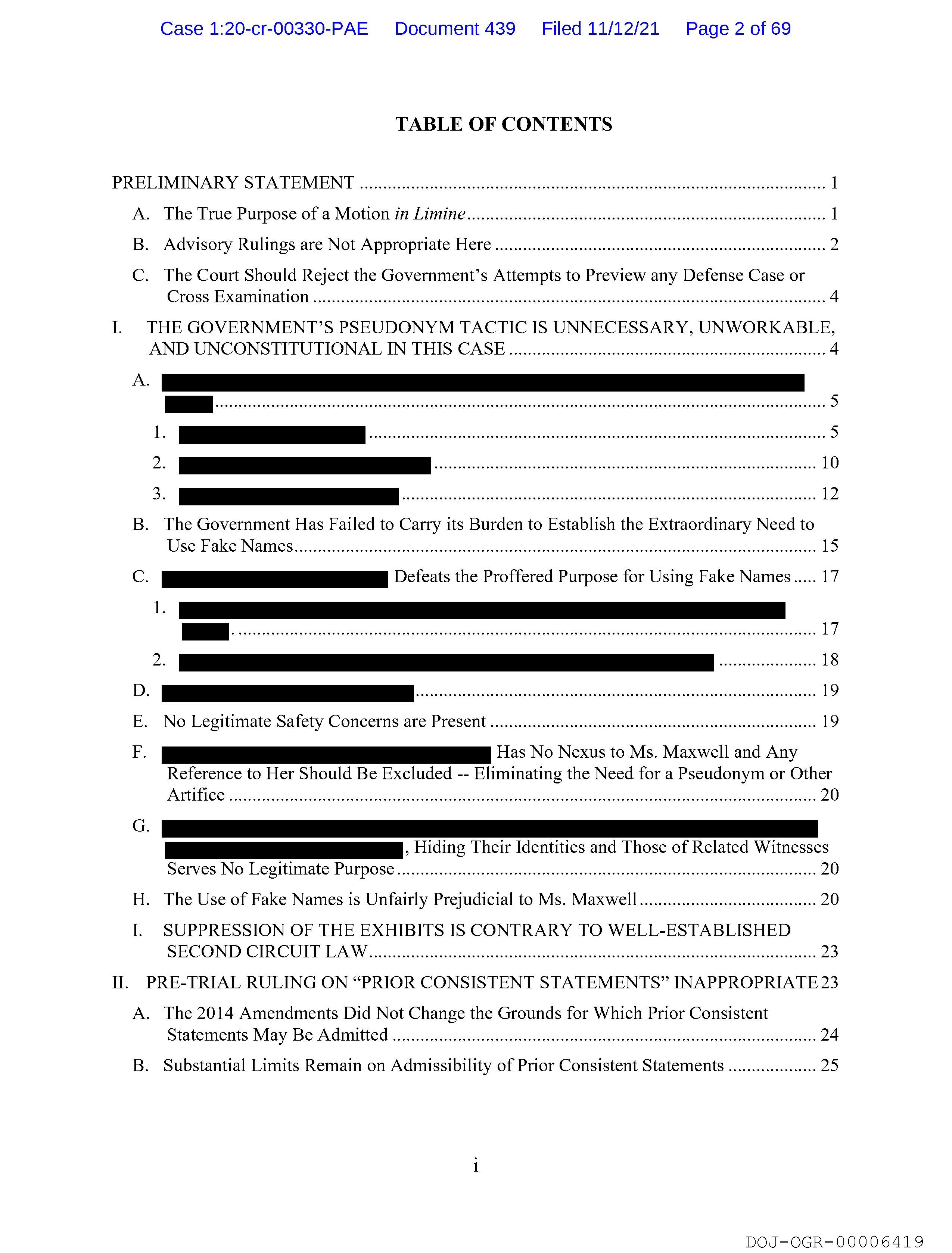 H. The Use of Fake Names is Unfairly Prejudicial to Ms. Maxwell ..........ccceeceeeeeeeereeereeeees 20