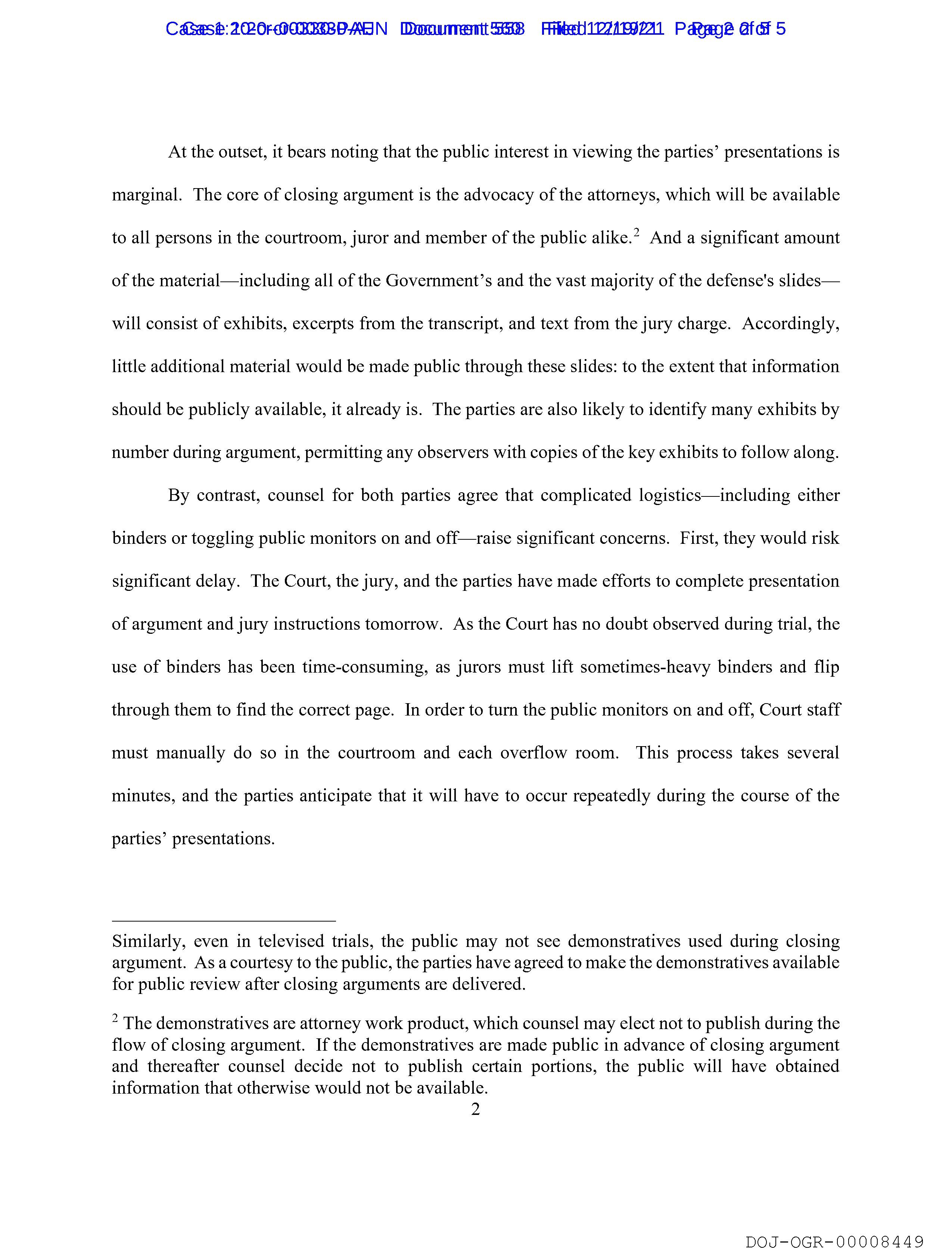 number during argument, permitting any observers with copies of the key exhibits to follow along.
