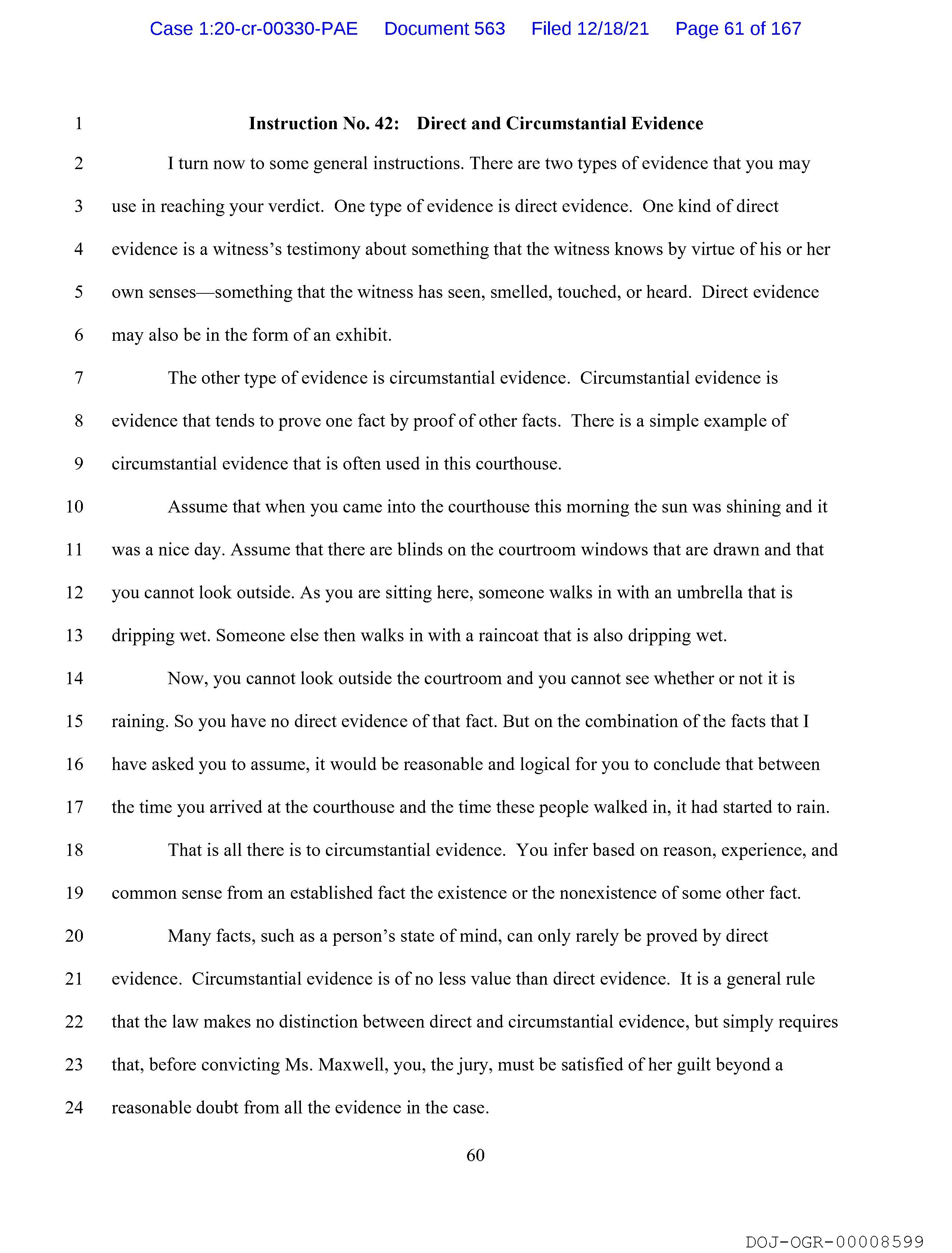 Instruction No. 42: Direct and Circumstantial Evidence