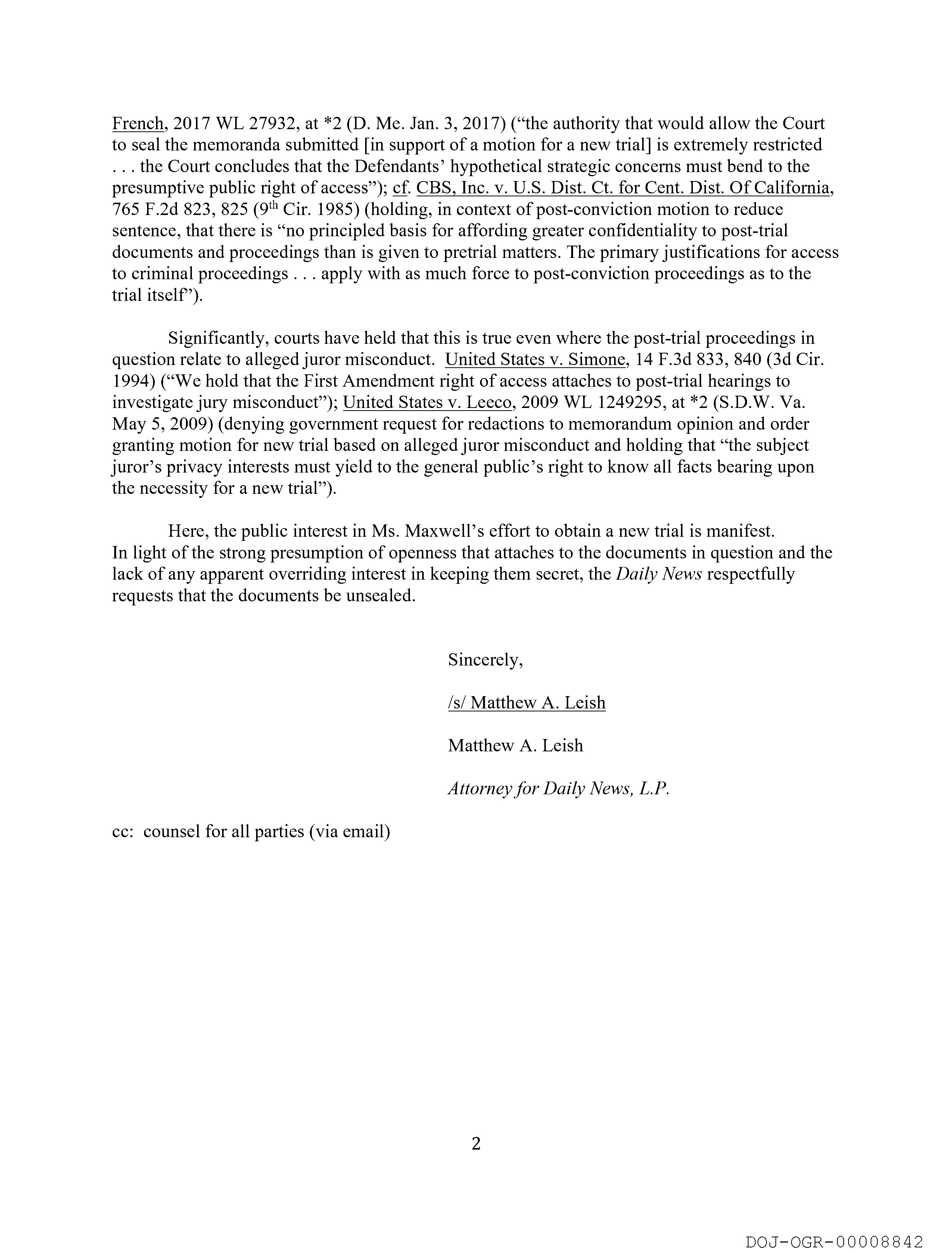 Here, the public interest in Ms. Maxwell’s effort to obtain a new trial is manifest.